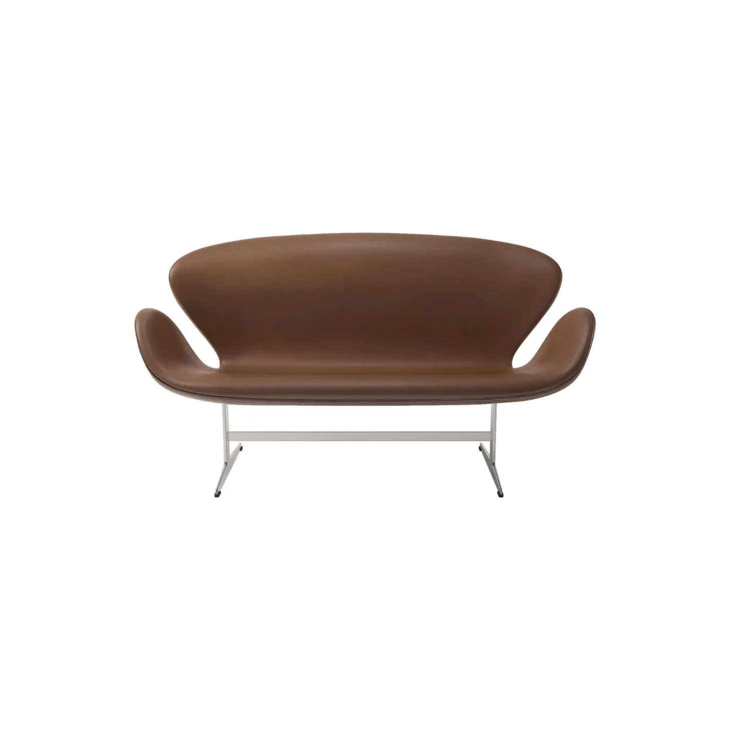 Svanesofa™ 3321 2-pers. sofa i Grace læder og stel i satinpoleret aluminium fra Fritz Hansen. Farve: valnød. Mål: H: 79 x B: 144 x D: 74 cm. Siddehøjde: 40 cm. Design: Arne Jacobsen.