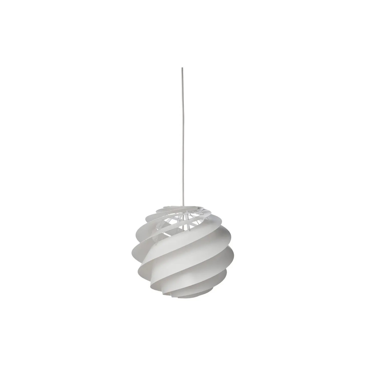 Swirl 3 pendel i håndfoldet plast og akryl fra LE KLINT. Farve: hvid. H: 30 x Ø 32 cm. Lyskilde: maks. 25W E27. Design: Øivind Slaatto.