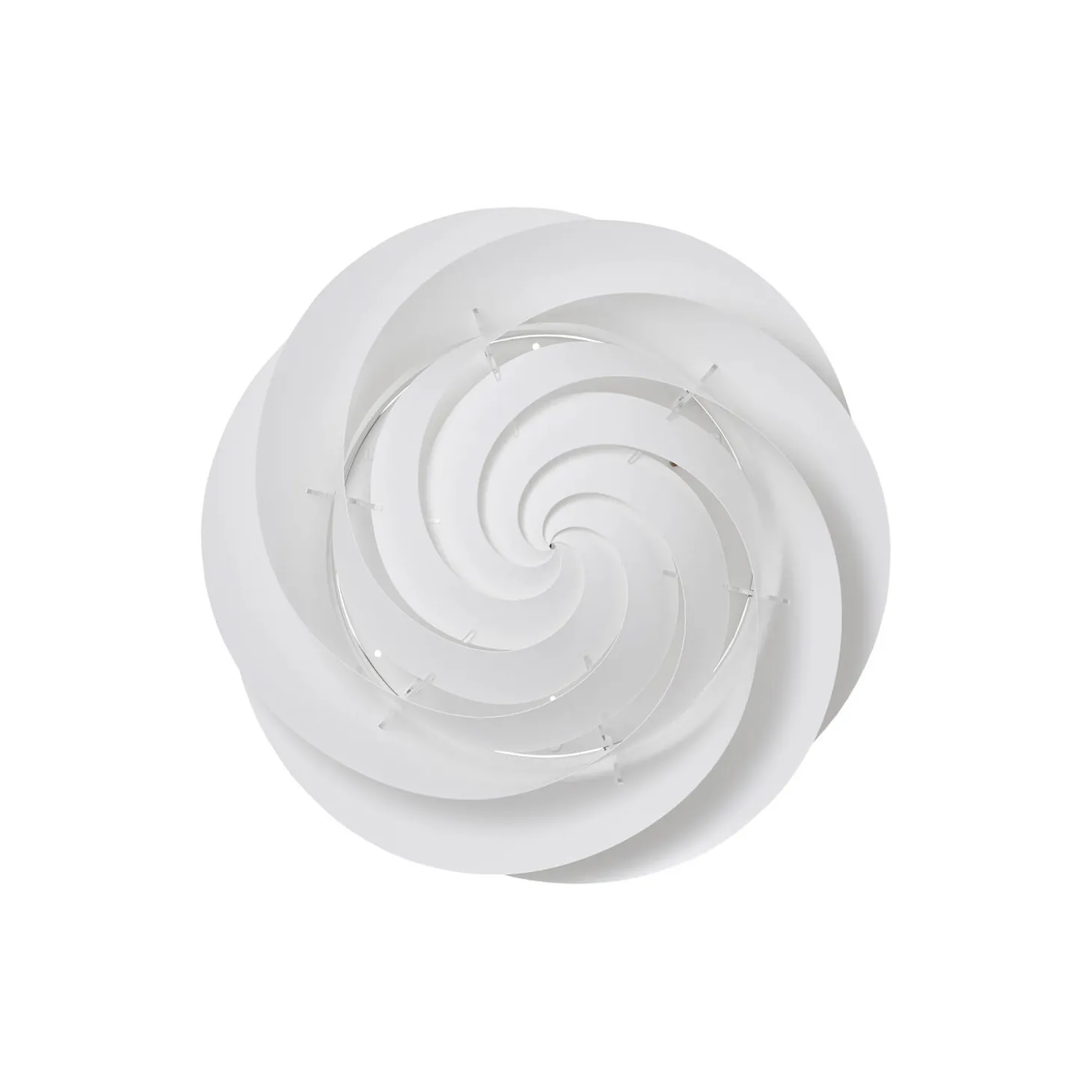 Swirl loft-/væglampe i håndfoldet plast og akryl fra LE KLINT. Farve: hvid. H: 20 x Ø 60 cm. Lyskilde: maks. 2 x 40W E27. Design: Øivind Slaatto.
