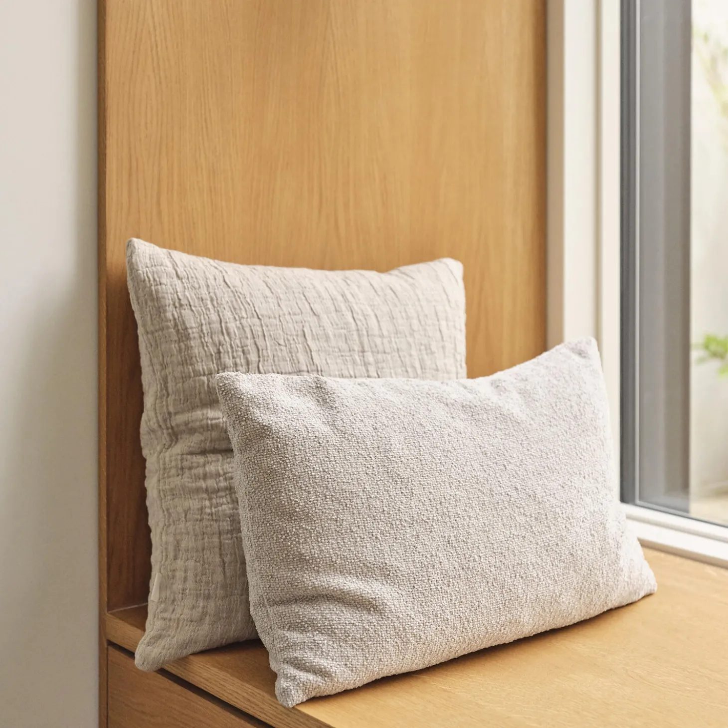 Ensfarvet Taffy pude i en enkel, luksuriøs bouclé, som evner at løfte rummets udtryk og skabe en særlig stemning. Taffy findes i flere størrelser og smukke farver.