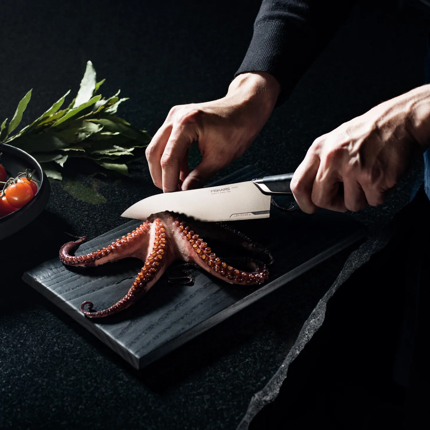 Fiskars Taiten er innovative køkkenknive, der slipper fantasien løs og giver fuld kontrol, når du frembringer lækre, kreative retter. Takket være sit titaniumblad er den mellemstore Taiten kokkekniv på 16 cm ekstraordinær let med en vægt på blot 96 g. Det gør kniven nem at bruge, og udskæringen af dine råvarer bliver hurtigere og mere præcis. Den revolutionerende LZR-EDGE™-teknologi, hvor partikler af titaniumkarbid bliver påført æggen med laser, holder kniven skarp op til fire gange længere end standardknive. Titanium giver også ultimativ beskyttelse mod rust og forlænger levetiden. Det ergonomisk-designede håndtag med tredimensionelt mønster sørger for et behageligt greb. Knivbryst og endekapsel i rustfrit stål giver en perfekt balance ved brug af mange forskellige skæreteknikker til kød og grøntsager. Vær opmærksom på, at titanium ikke er et magnetisk materiale, så kniven kan ikke opbevares på magnetiske knivholdere som f.eks. en magnetisk knivskinne eller knivblok. På grund af det særlige titaniumblad anbefaler vi kun slibning med slibesten og opvask i hånden, når kniven skal rengøres. Skær aldrig i frosne madvarer eller andre ekstremt hårde ting. 25 års garanti. Designet i Finland.