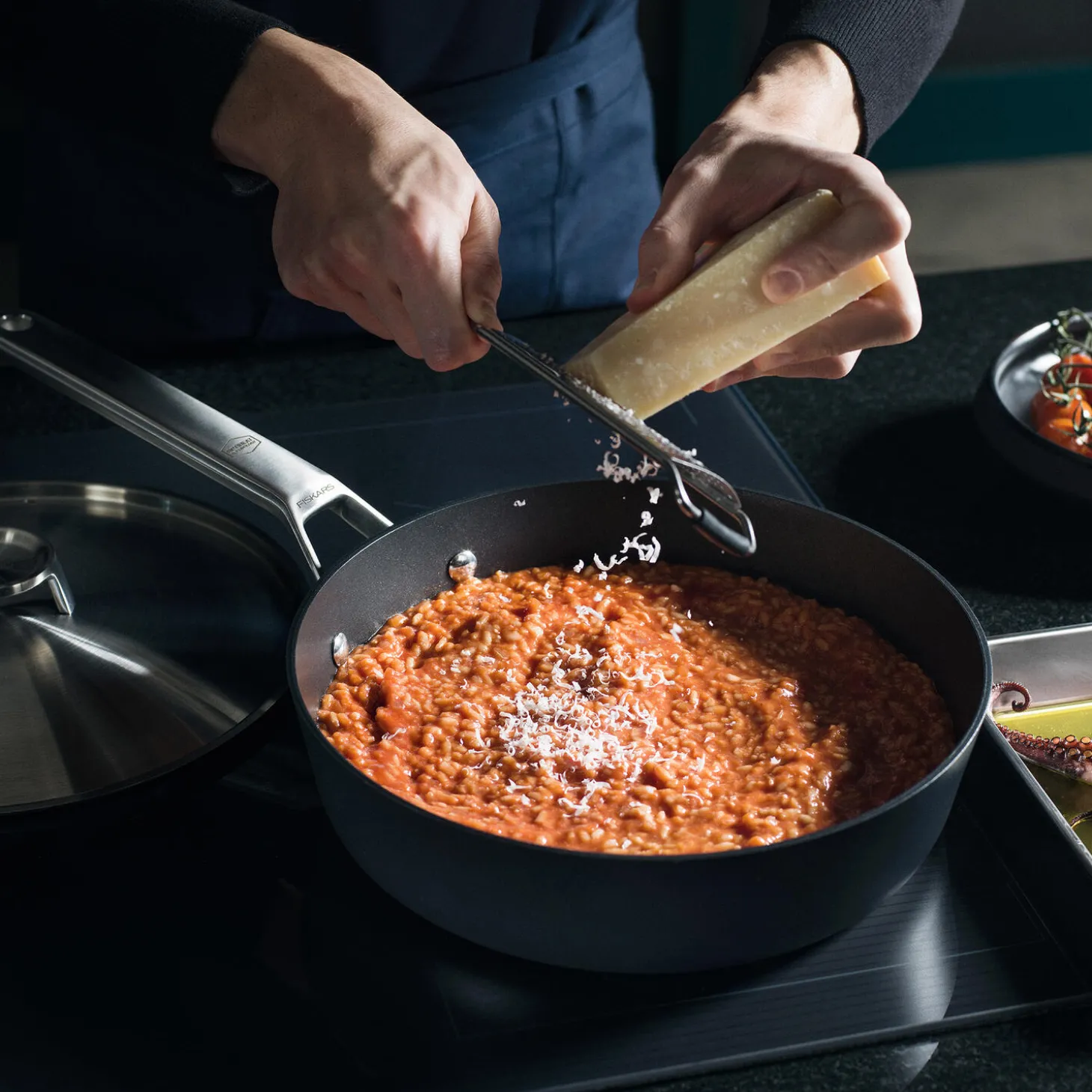 Fiskars Taiten er innovativt kogegrej, der slipper fantasien løs og giver fuld kontrol, når du frembringer lækre, kreative retter. Taiten sauterpande på 26 cm med OPTIHEAT™ og låg er fremstillet af 100 % genanvendt aluminium i høj kvalitet, som leder varmen ekstremt godt, hvilket betyder, at maden ikke kun opvarmes fra bunden, men også fra siderne af panden. Den revolutionerende OPTIHEAT™ teknologi forhindrer panden i at blive overophedet på induktionszoner ved midlertidigt at afmagnetisere materialet, når temperaturerne når over 230 °C, hvilket gør Taiten til det innovative valg til det moderne køkken. Pandens non-stick Ceratec™-belægning uden plast giver den enestående non-stick egenskaber. En unik energibesparende bund optimerer stegefadets bund til 50 % hurtigere opvarmning og giver god temperaturstyring, samtidig med at den bruger 30 % mindre energi på glaskeramiske kogezoner Dens langtidsholdbare design omfatter et klassisk, ergonomisk håndtag i rustfrit stål. Kan bruges på alle kogezoner og i ovnen ved temperaturer op til 270 °C. Designet og fremstillet i Finland. Nem at genanvende.
