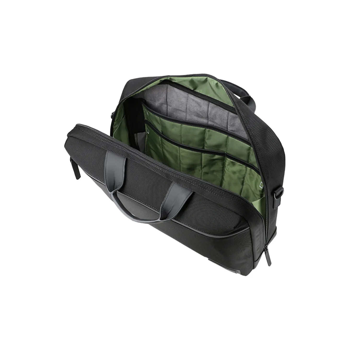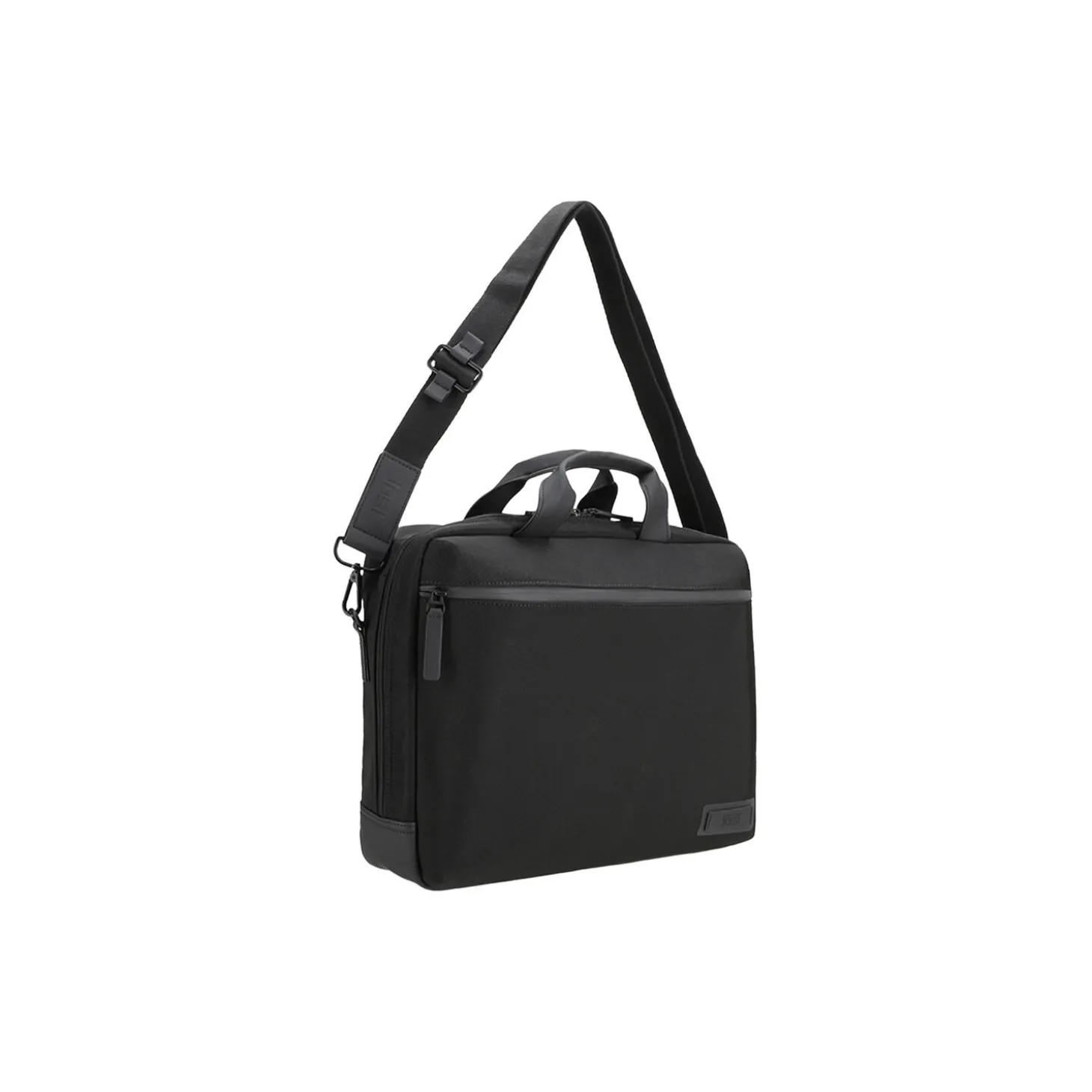 Business-taske i et sporty og samtidig professionelt design, let og slidstærk i materialevalget. Tasken er fremstillet af 100 % nylon og rummer tretten afdelinger. Den er vegansk, vandafvisende og udstyret med reflekterende detaljer, polstret laptop- og tablet-rum, mobiltelefonlomme, nøglestrop, aftagelig skulderrem og en praktisk flaskeholder.