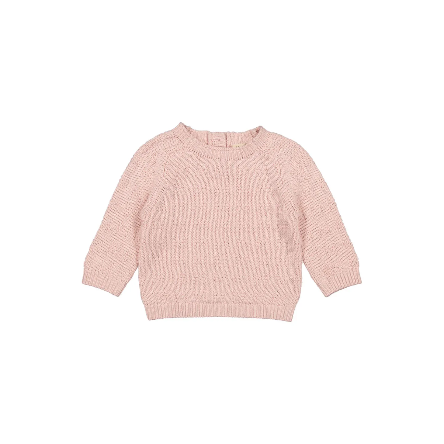 Strikbluse til de mindste med raglanærmer og knaplukning bagpå. Strikblusen er både blød, chunky og har et flot fald. Strikblusen er perfekt til både forår og efterår.