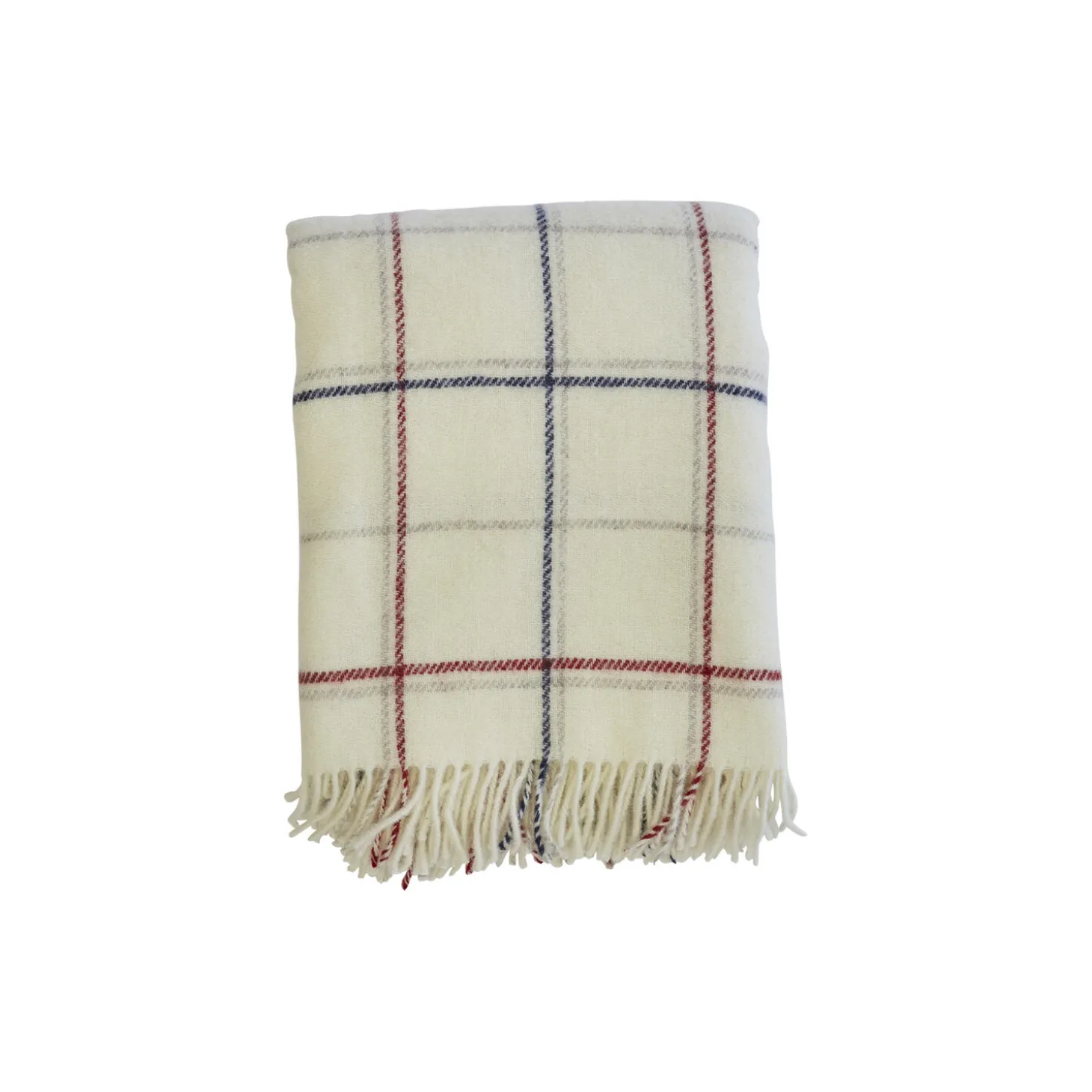 Tartan plaid i 100% uld fra Klippan Yllefabrik. Farve: off-white/red stripe. Mål: 130×200 cm.