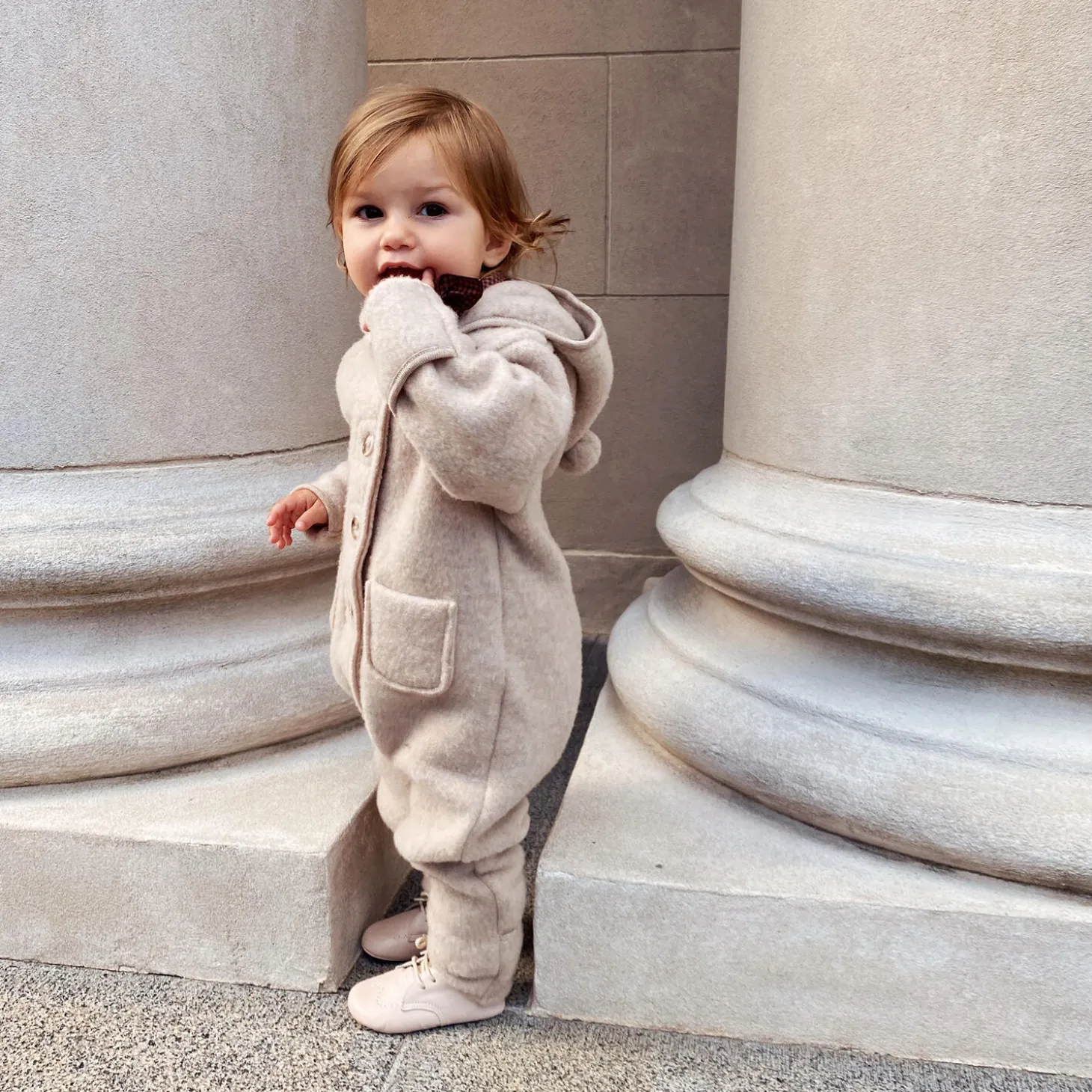 Teddy Onesie in 100% merino wool from Lalaby. Colour: oat.