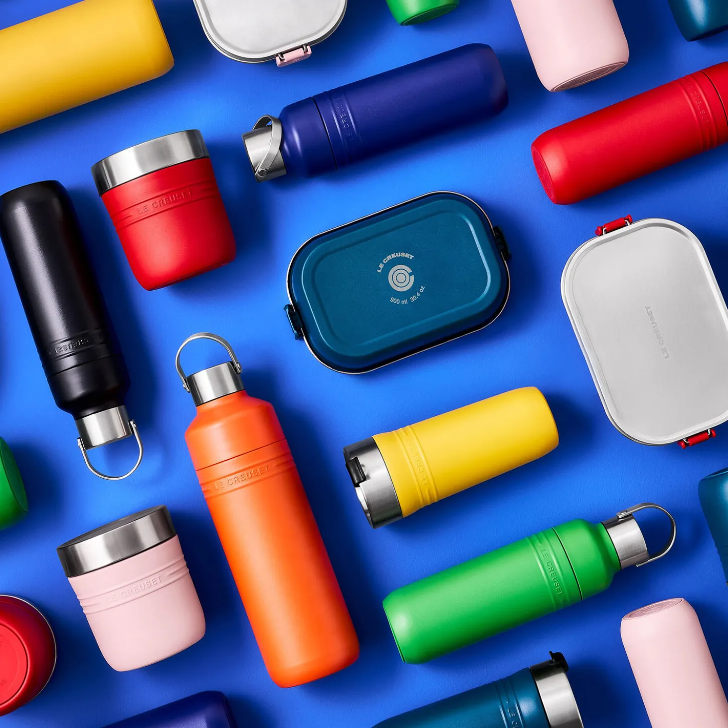 Introducerer den nye On the Go-kollektion fra Le Creuset – en smart, farverig og genanvendelig serie af bærbare beholdere til mad- og drikkevarer, designet til at følge dig hvor som helst, når som helst. Den isolerede vandflaske fra Le Creuset On the Go-kollektionen er skabt med fokus på komfort og har en smal åbning i toppen for nem drikning samt en større åbning, der er perfekt til at tilføje isterninger, citron eller mynteblade. Den større åbning gør også genopfyldning og rengøring lettere. Takket være den dobbeltvæggede vakuumisolering holder dine drikkevarer sig varme eller kolde i flere timer. Den holdbare, farverige overfladebehandling er ridsefast og bevarer sit ikoniske udseende, mens den kompakte størrelse på 500 ml passer perfekt i din rygsæk. Flasken er udstyret med tætsluttende låg, der forhindrer spild, og er fremstillet i rustfrit stål, der er hygiejnisk og nemt at rengøre – din farverige ledsager. Disse genanvendelige produkter er ikke kun skånsomme mod miljøet, men kommer også i Le Creusets ikoniske farvepalet for en tidløs følelse. Gør dig klar til at bringe farver i din hverdag – uanset om du skal på picnic, vandretur eller blot pendler til arbejde. Med holdbare overfladebehandlinger, lækagesikre låg og overflader, der er lette at holde rene, tilbyder kollektionen maksimal komfort og brugervenlighed. Med On the Go kan du opleve friheden ved at have Le Creusets velkendte kvalitet med dig, uanset hvor din dag bringer dig.