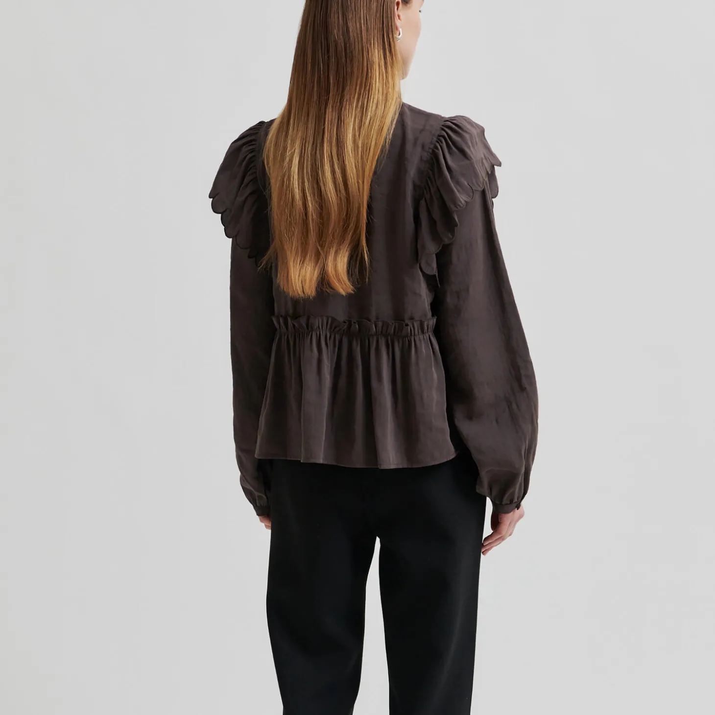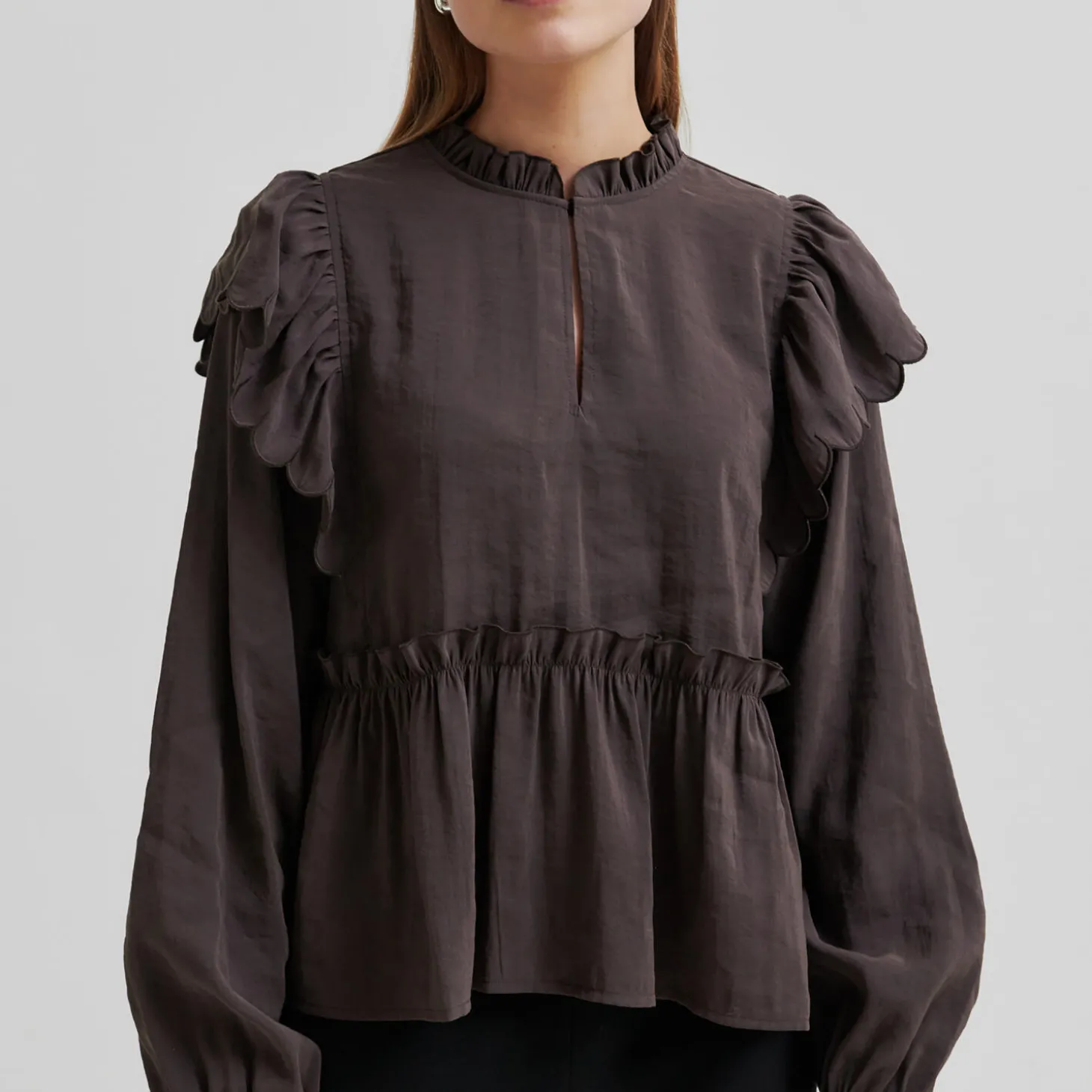Terra Frill Blouse, chocolate plum