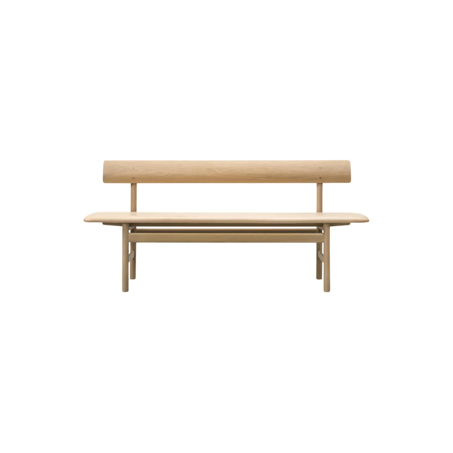 The Mogensen Bench bænk i sæbebehandlet eg med sædepolstring i anilinlæder Vegeta 90 fra Fredericia. Farve: sæbebehandlet eg/natur. Mål: H: 77 x L: 171,5 x D: 48,5 cm. Siddehøjde: 46 cm. Design: Børge Mogensen.