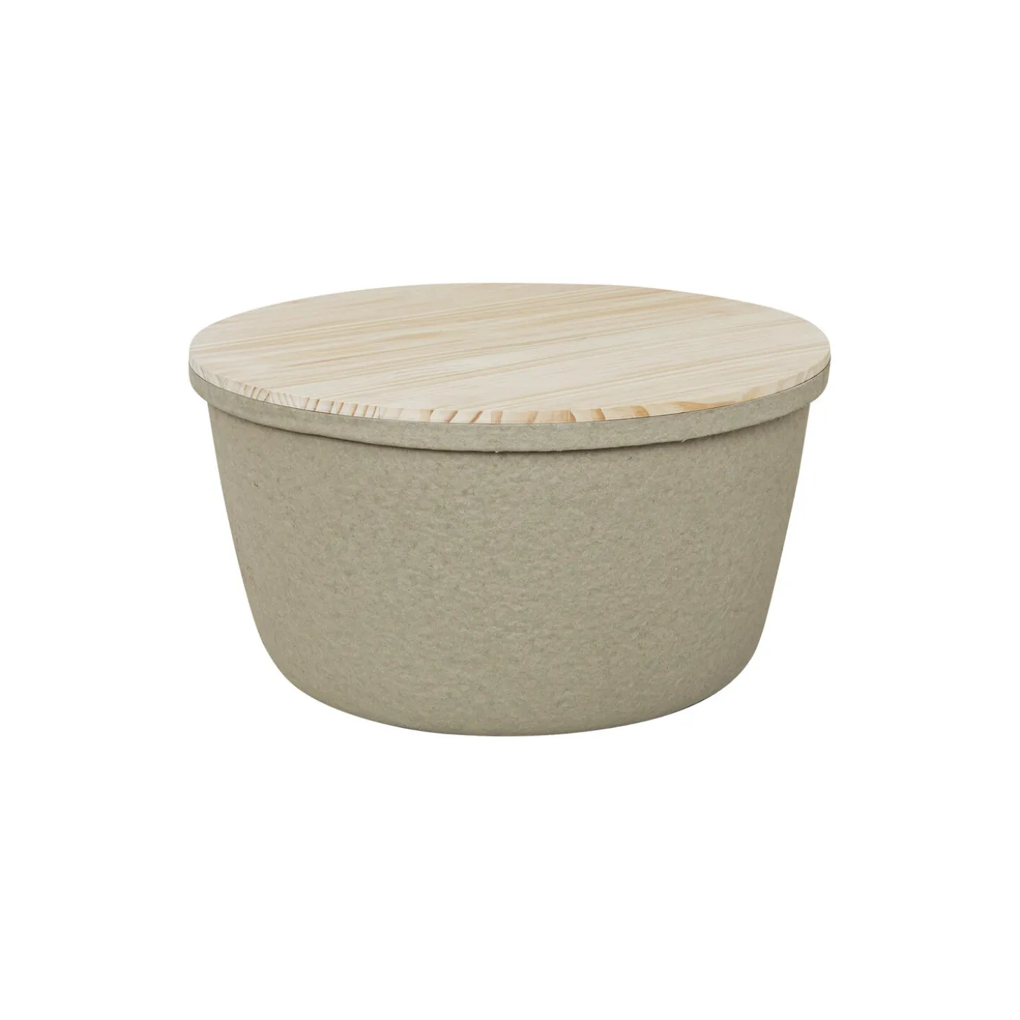 Sidebord i bæredygtigt genbrugs papir med plade af europæisk fyrretræ. Dens lette egenskaber gør at den nemt kan flyttes rundt og bruges i forskellige hjørner af hjemmet. Træ pladen kan aftages hvilke gør bordet ideel til opbevaring af strikke tøj, tæpper og andre genstande.