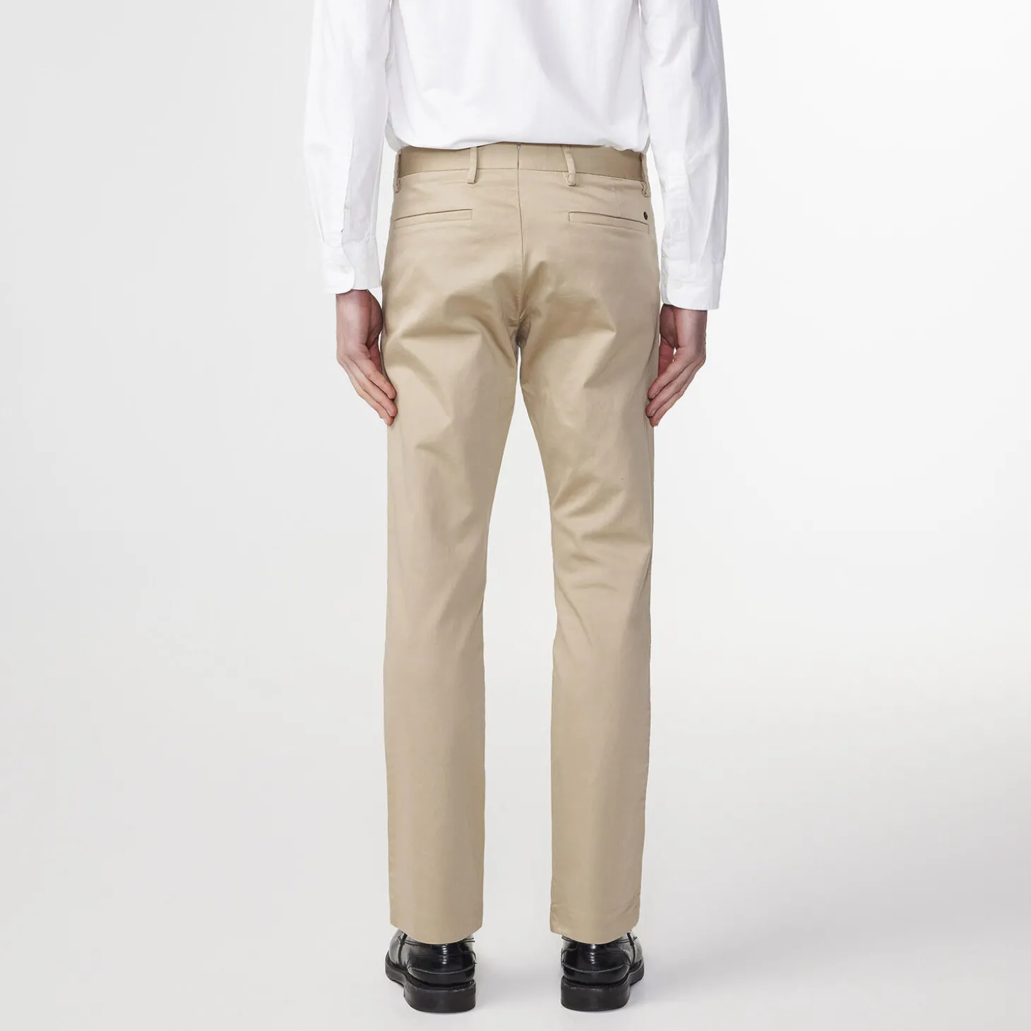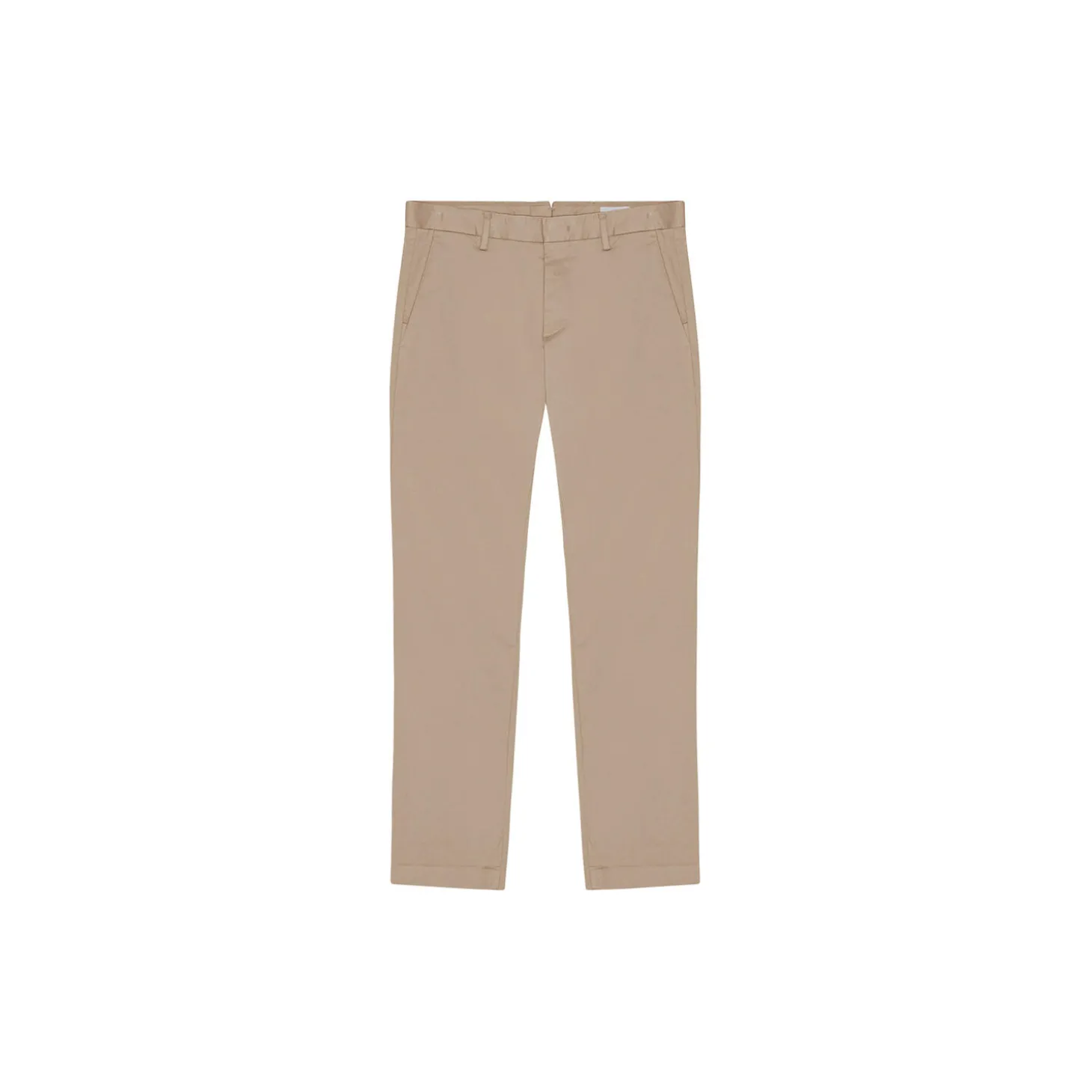 Theo is a chino at heart but with the formal elements of a dress pant. Crafted in an organic cotton from Italian mill Progetto Uno. This versatile mid-rise trouser has a tapered fit. Finished with a crisp crease at leg and blind hem making them