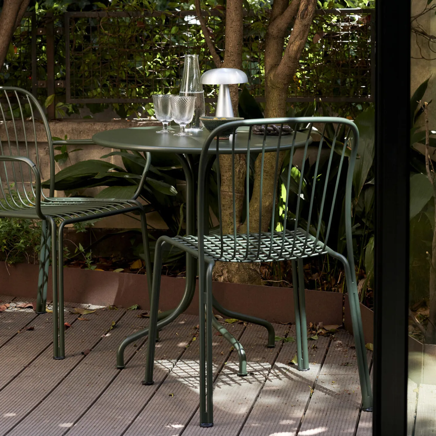 Thorvald-samlingen fejrer udendørslivet med skulpturelle silhuetter og en leg med lys og skygge. Det er en moderne fortolkning af de lyriske linjer fra Danmarks mest værdsatte neoklassiske kunstner, Bertel Thorvaldsen, og de fortryllende motiver fra hans navngivne museum. Stålrammen skaber kontrast til gitterstrukturens lethed og tilføjer smidighed til den stabelbare armstol, hvilket gør den nem at placere både i naturen og i bymiljøer.