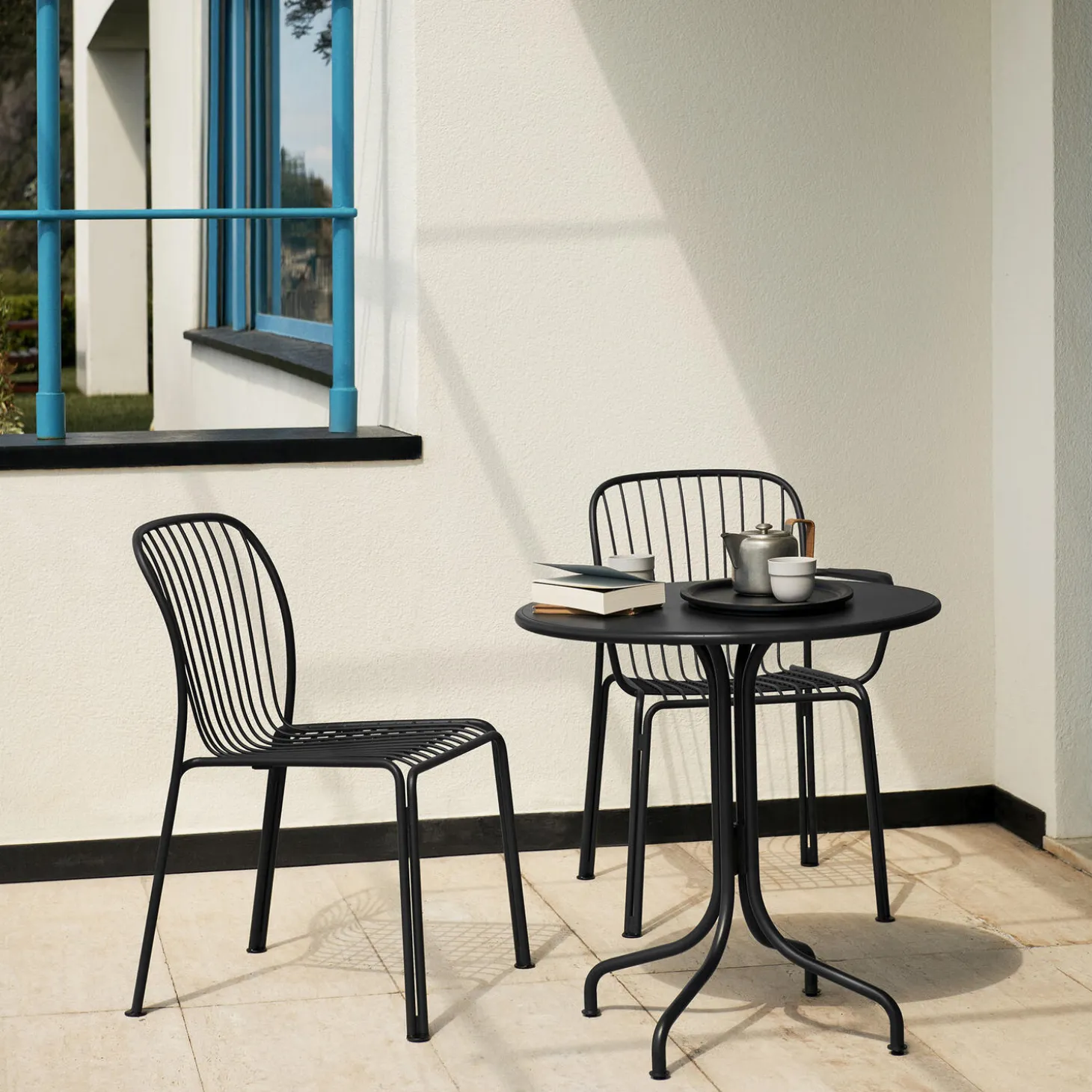 Thorvald-samlingen hylder udendørslivet med skulpturelle silhuetter og en leg med lys og skygge. Det er en moderne fortolkning af de lyriske linjer fra Danmarks mest værdsatte neoklassiske kunstner, Bertel Thorvaldsen, og de fortryllende motiver fra hans navngivne museum. Samlingen inkluderer en række borde, og dette runde cafébord indbyder dig til at standse op, nyde en snak, en drink eller et øjeblik under åben himmel.