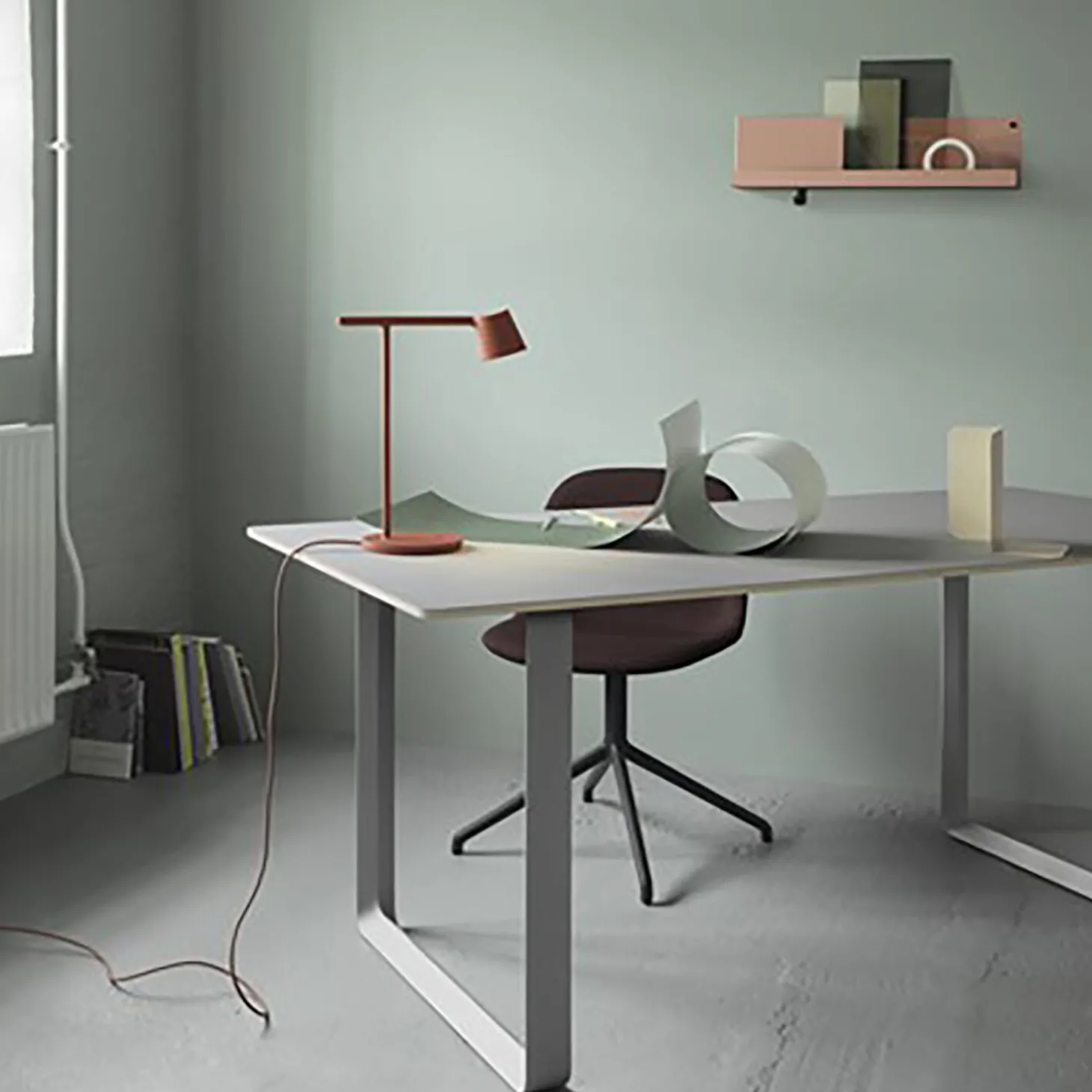 Created from the idea of stripping a design down to its essentials, the Tip Table Lamp is an example of simple, functional design with careful attention to detail. Offering direct as well as ambient light, the lamp’s adjustable head and arm feature an opal diffuser and dimmer function that effortlessly alters the volume of light.