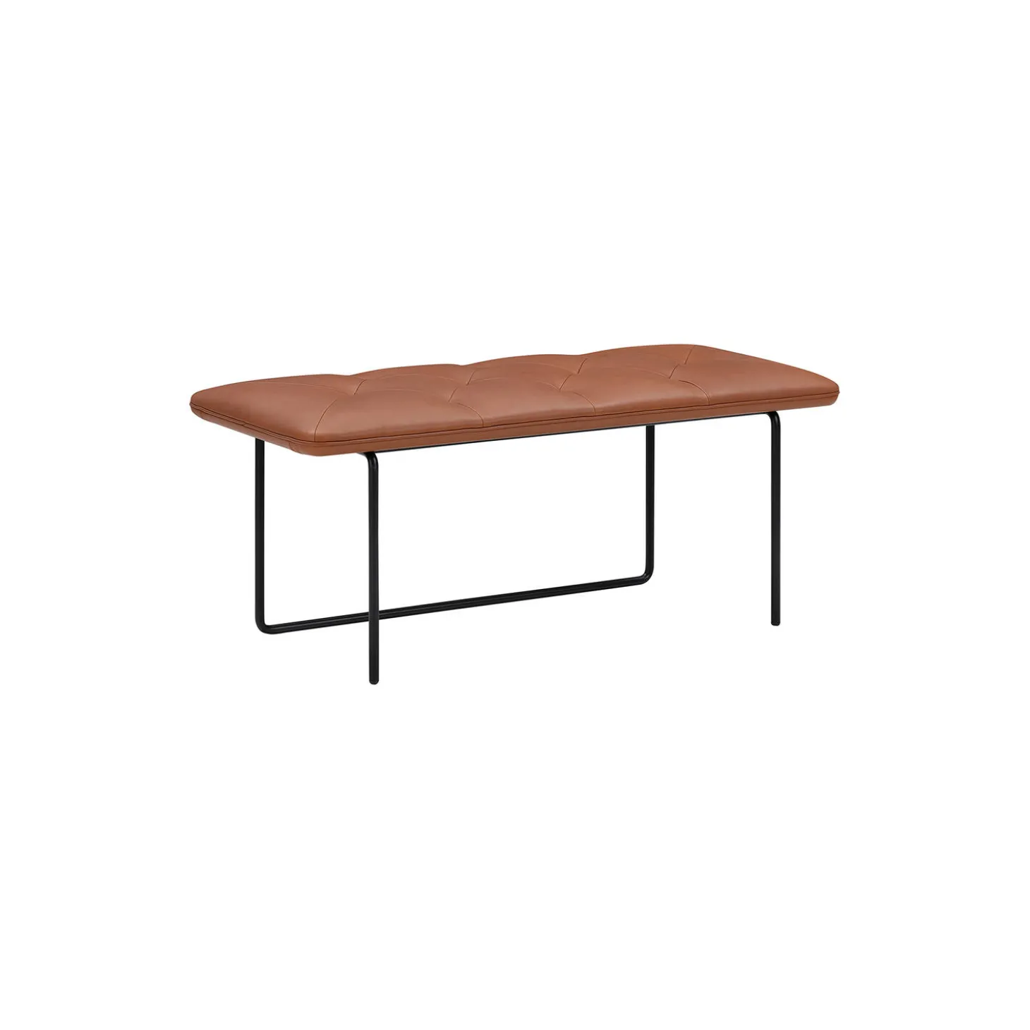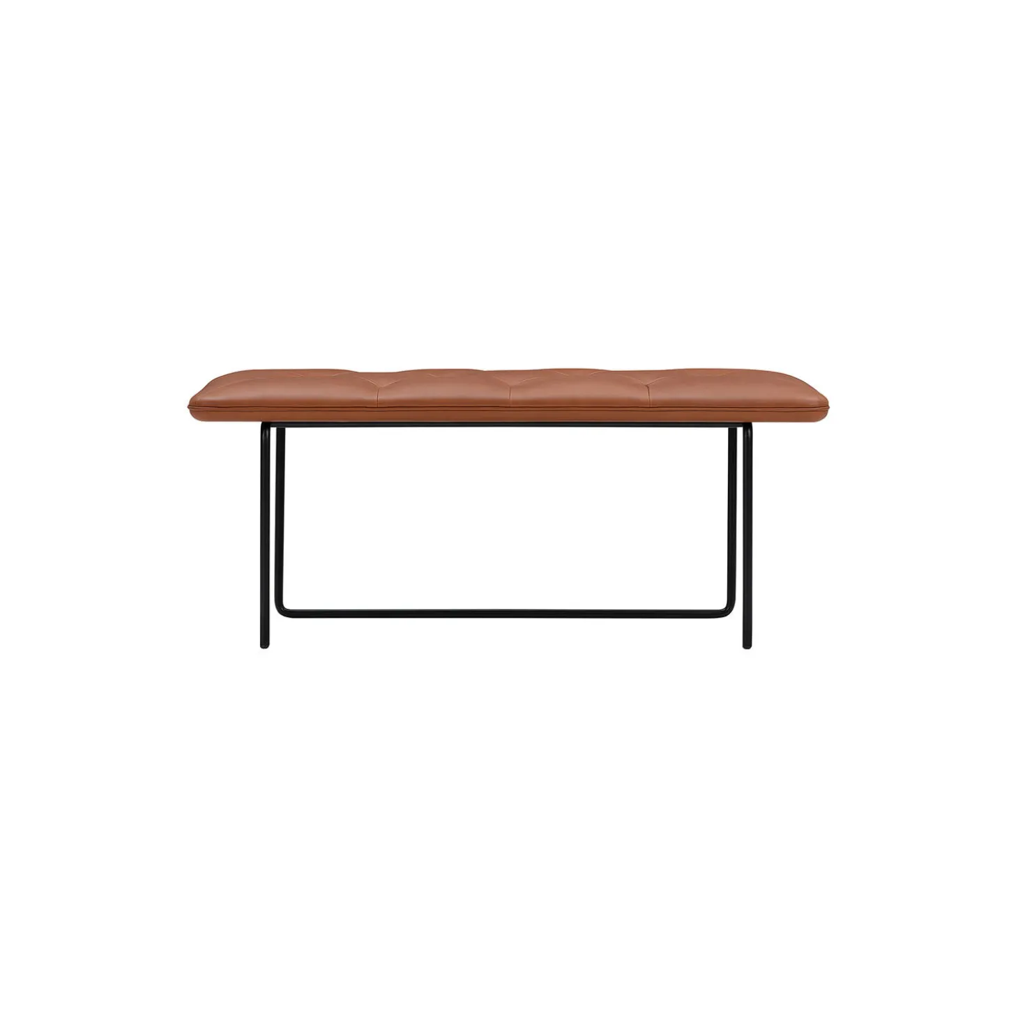 Tip Toe Bench med polstring i Parma anilinlæder og stel i pulverlakeret stål fra Wendelbo. Farve: cognac. Mål: H: 45 x L: 110 x B: 45 cm. Design: Steffensen & Würtz.