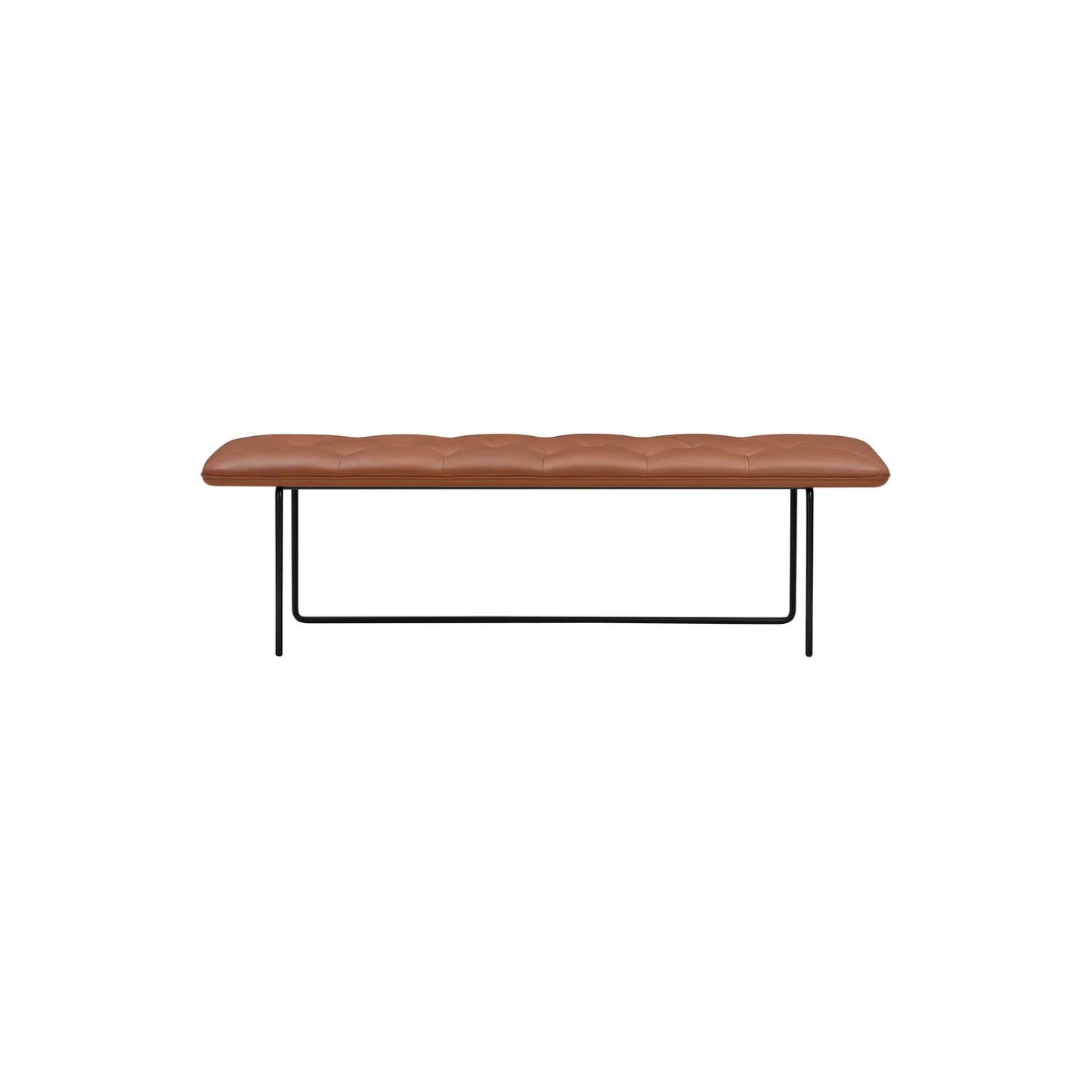 Tip Toe Bench med polstring i Parma anilinlæder og stel i pulverlakeret stål fra Wendelbo. Farve: cognac. Mål: H: 45 x L: 155 x B: 45 cm. Design: Steffensen & Würtz.