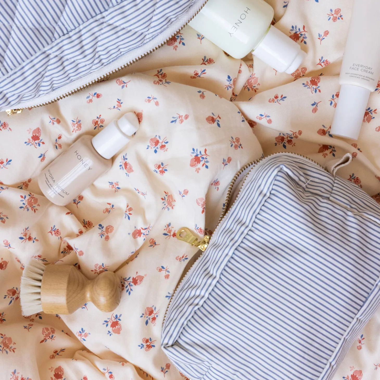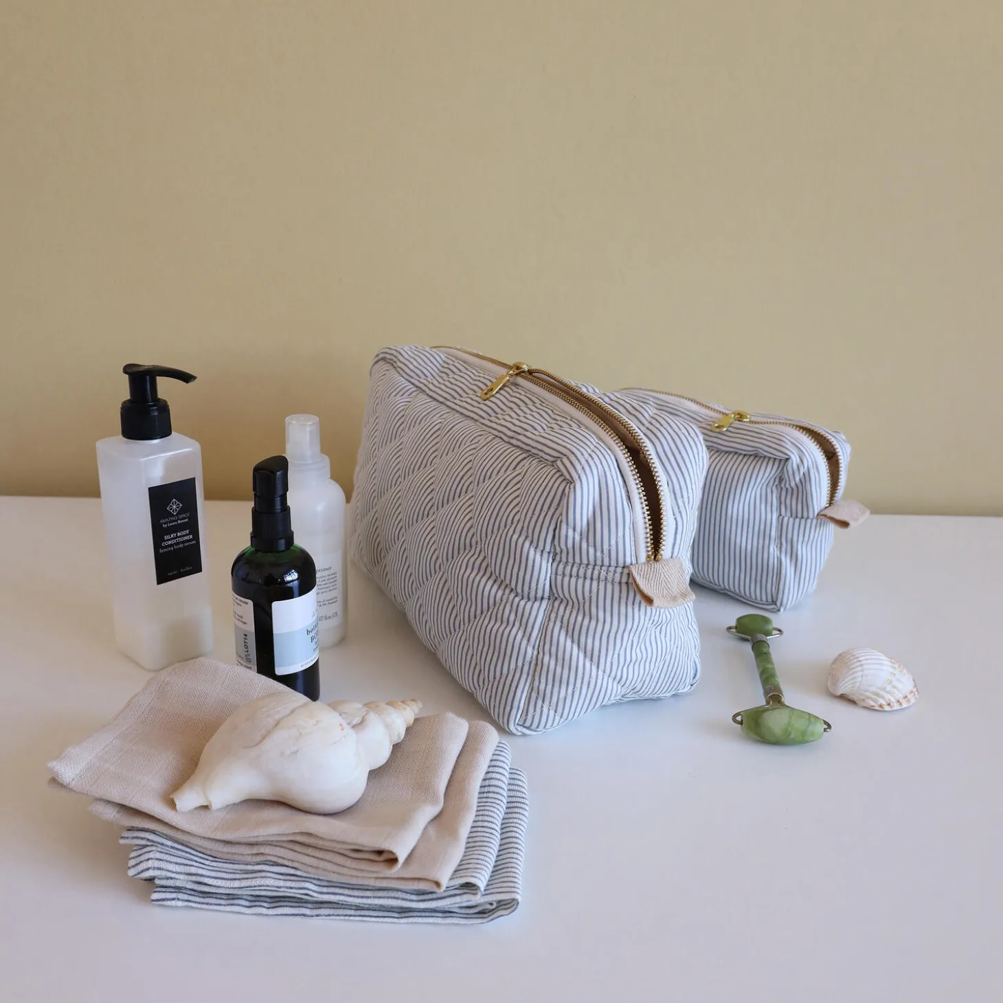 Lækker og praktisk quiltet toilettaske.Toilettasken er coated både indeni og udenpå, hvilket beskytter stoffet, og gør den mere vand- og smudsafvisende. Tasken har en smart lomme indeni, eksklusive detaljer som messing lynlås og spænder. Tasken er rummelig, og egner sig også fint til puslesager som vådservietter mm.