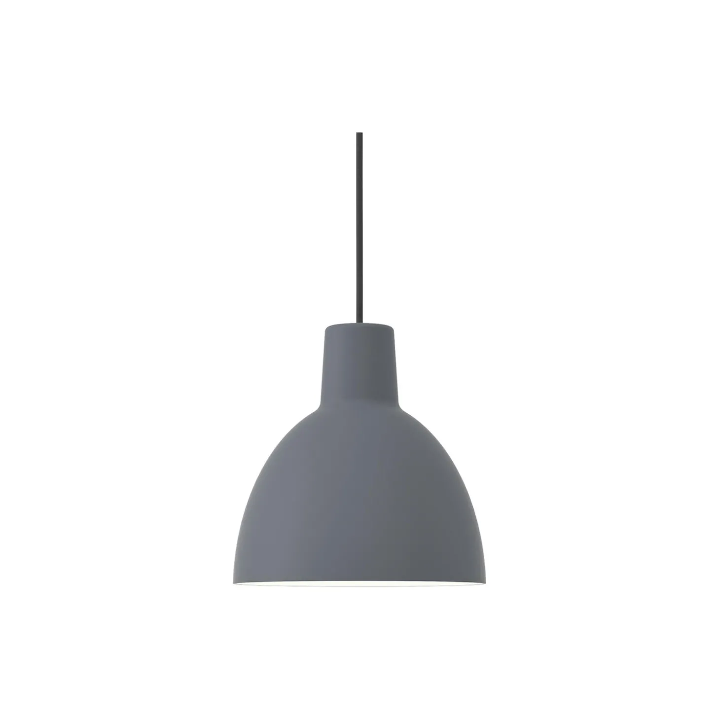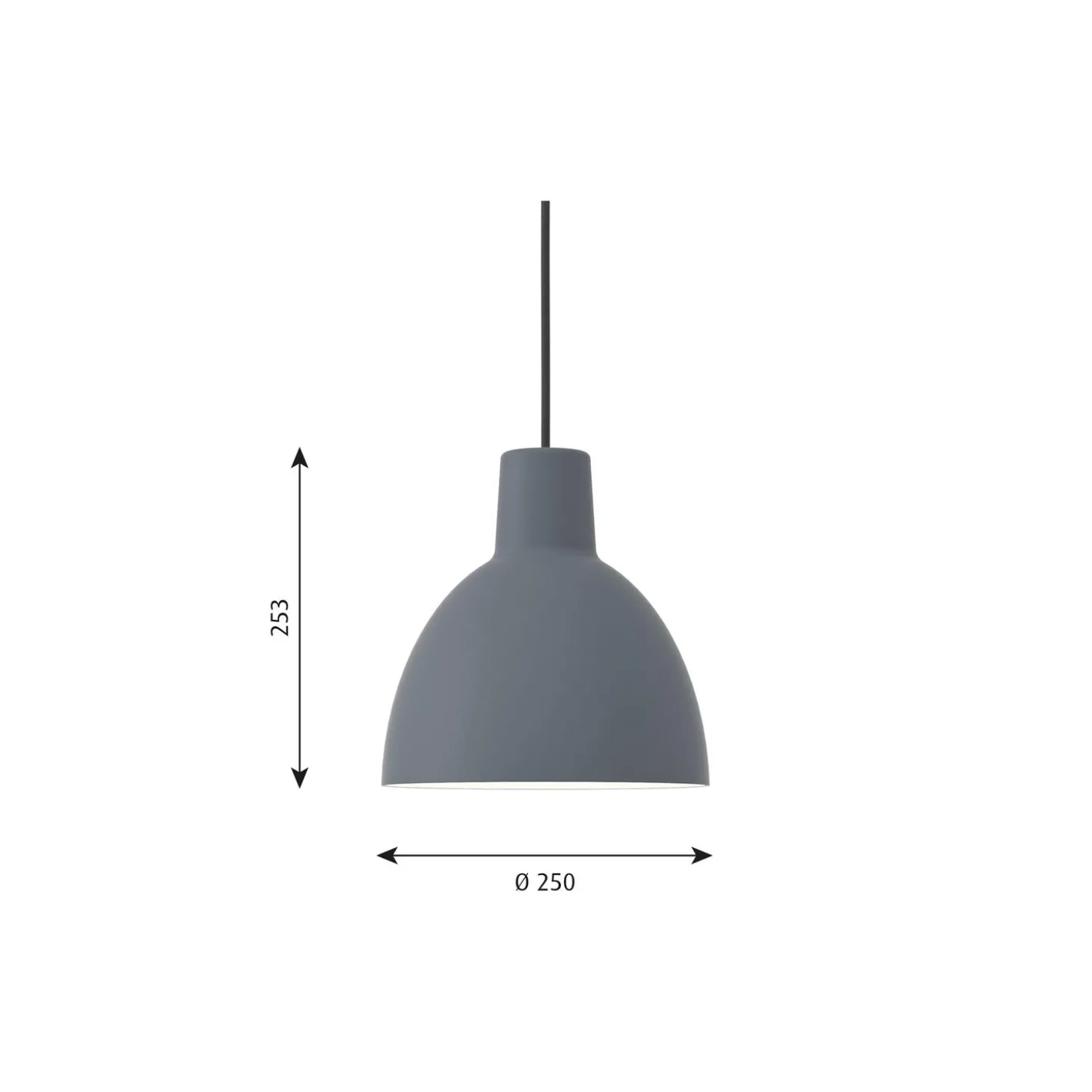 Toldbod 250 pendel i optrukket aluminium fra Louis Poulsen. Farve: blågrå. Mål: H: 25,3 x Ø 25 cm. Lyskilde: maks. 60W E27. Design: Louis Poulsen.