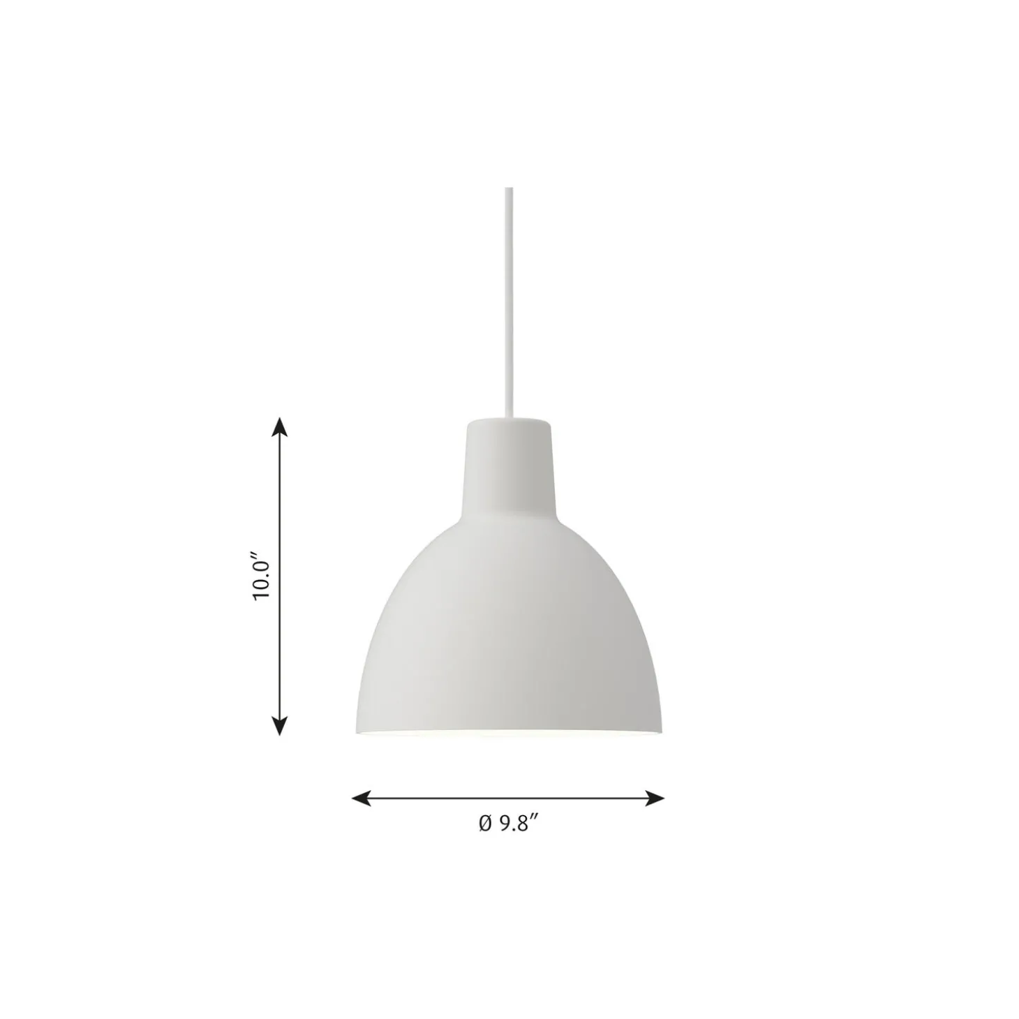 Toldbod 250 pendel i optrukket aluminium fra Louis Poulsen. Farve: hvid. Mål: H: 25,3 x Ø 25 cm. Lyskilde: maks. 60W E27. Design: Louis Poulsen.