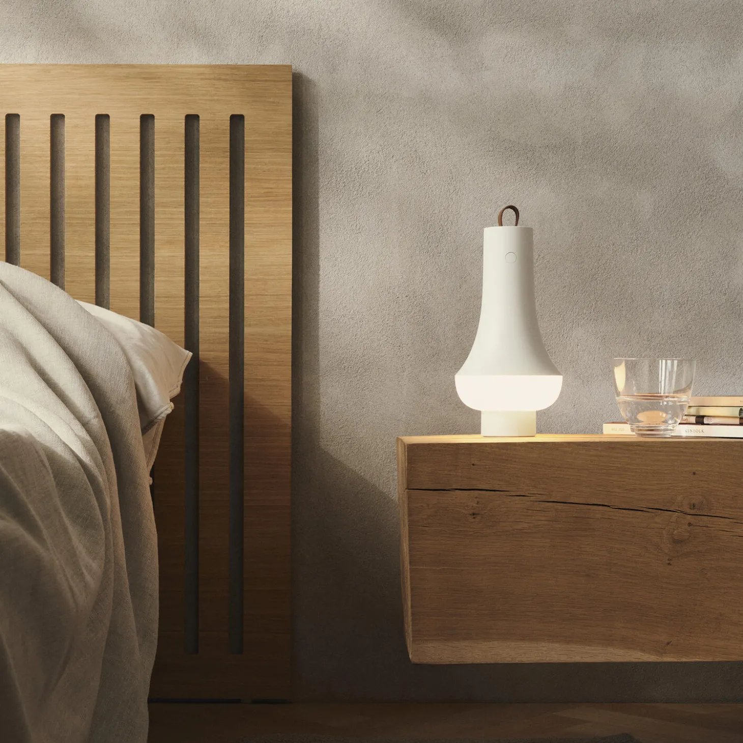 Denne bærbare bordlampe udsender et blødt, blændfrit lys, der oplyser overfladen nedenunder og giver et smukt omgivende lys. Den udskiftelige LED-lyskilde er placeret mod lampens fod. Med et minimalistisk udtryk og kvalitetsmaterialer er den designet med fokus på lang levetid og anvendelighed.