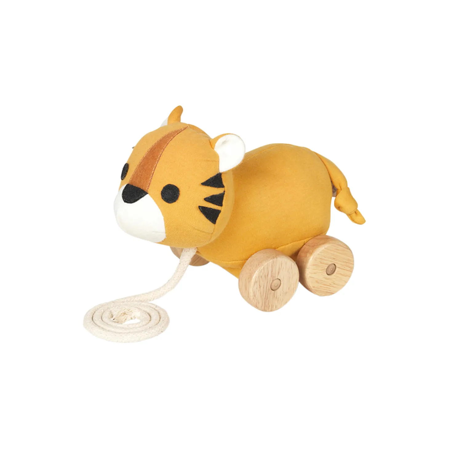 Tom tiger trækdyr i 100% økologisk bomuldsjersey og fyld af 100% majsfibre fra FRANCK & FISCHER. Farve: yellow. Mål: H: 13 x L: 11 x B: 21 cm.