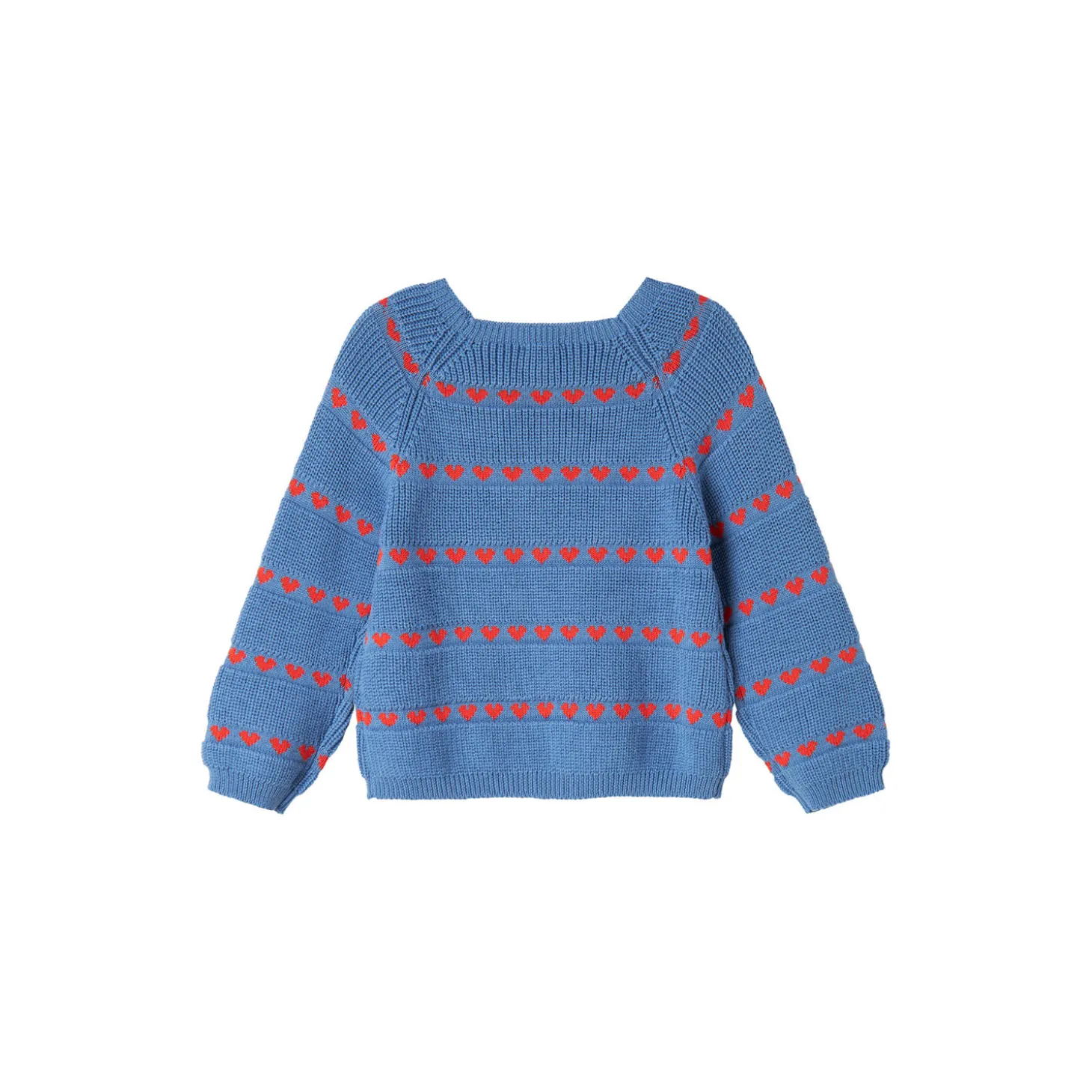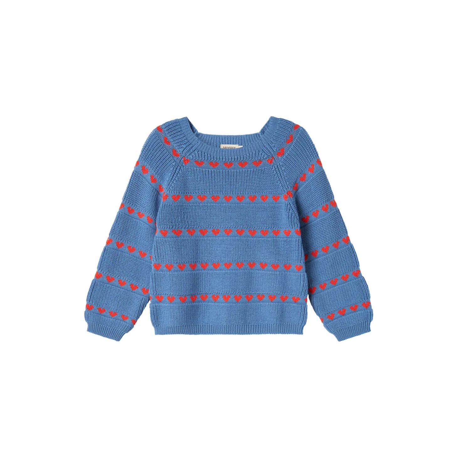 Langærmet bluse med raglanærmer og hjertestrik detaljer.