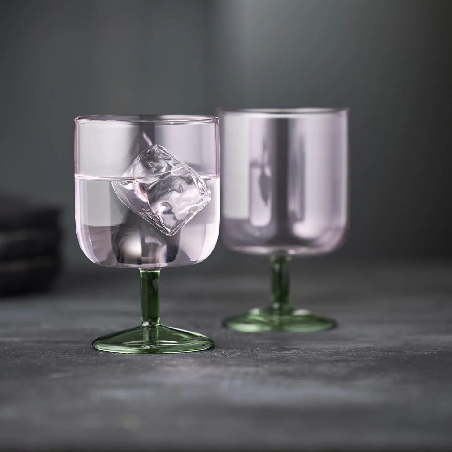 Gør hverdagen mere festlig med farverige vinglas, der giver borddækningen et let, legende og levende udtryk.