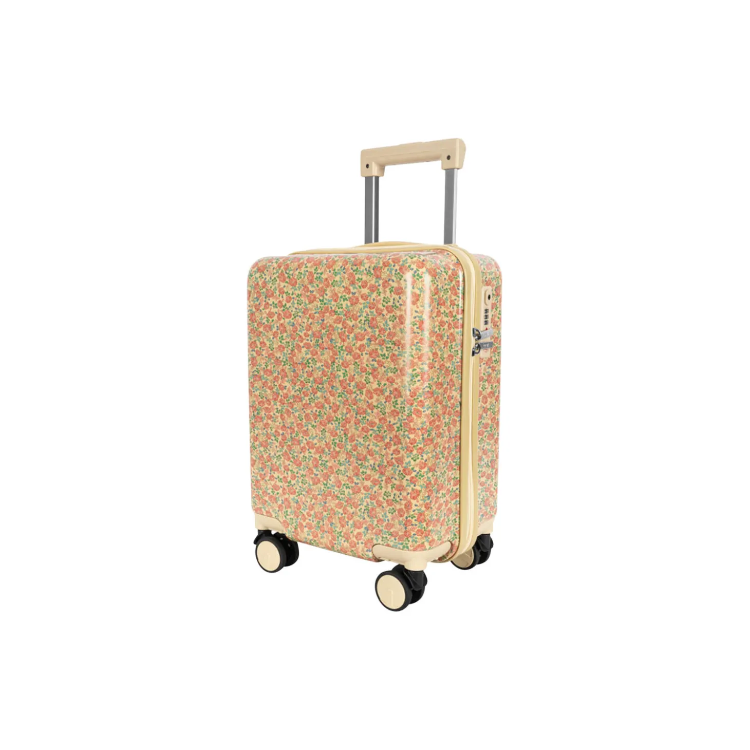 Lightweight, cabin size suitcase suitable for carry-on luggage. Made with a hard shell, four double 360-degree spinner wheels, and an approved built-in coded TSA LOCK®. Features a practical top handle and an adjustable aluminium 3-step telescoping handle. Designed with a bottom compartment with ribbons and a zipped top compartment with zipped mesh net pocket. Materials: Case: PC. Trolley: Aluminium. Handle: PP. Wheels: PP, NYLON, TPE. Lining: Polyester. Measurements: H: 45 x L: 31 x W: 21 cm. Volume: 25 L. Weight: 2.4 kgs. Handle can be pulled up to an additional: 55 cm. WARNING: This is NOT a toy. Please keep packaging for future refere. Suitable from 3y+.