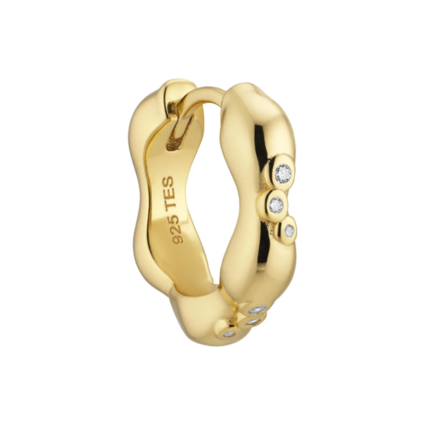 Smuk huggie ørering i bølgende form med klare sten i formationer. Sælges enkeltvis.