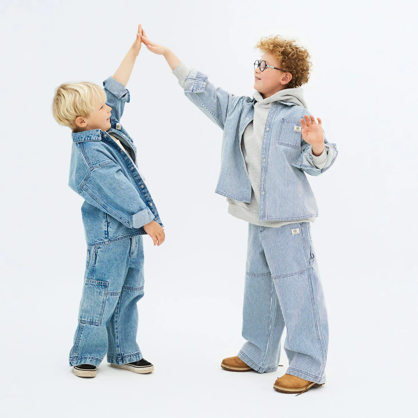 Wheat x Pernille Teisbæk for Børnecancerfonden’ is a limited edition collection of unisex children’s clothing – all profits go to the Danish Childhood Cancer Foundation—Baggy jeans in washed denim with adjustable waist, side pocket, loop and smiley-embossed buttons. A durable everyday classic that can be used across the seasons.Trousers waist measurements (please note that the waist has an adjustable elastic band): 2 years – 45 cm4 years – 49 cm6 years – 53 cm8 years – 57 cm—- Standard 100 by OEKO-TEX®- 100% organic cotton