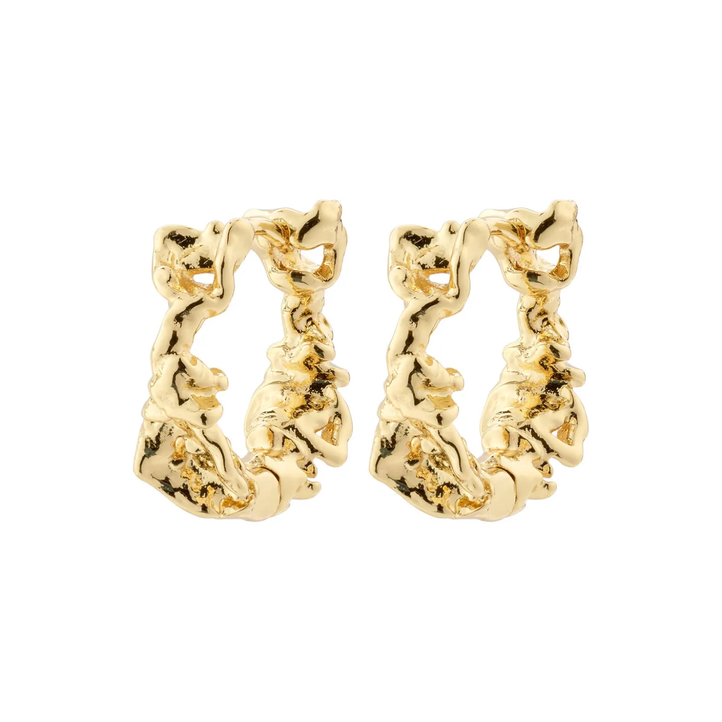 Trust your journey, og tag dit look til næste niveau med Pilgrims TRUST øreringe. De rustikke guldbelagte huggie hoops leverer en organisk charme og en handcrafted feel, der er ideel til at spice dine everyday outfits op. En letanvendelig kliklås gør dem nemme at style på farten, hvor det rustikke udtryk komplementerer sæsonens knitwear og bløde tekstiler. Øreringene er mindfuldt fremstillet med 99% genanvendt materiale – det er fashion med omtanke.