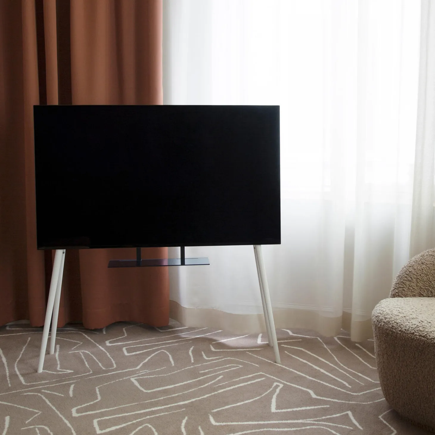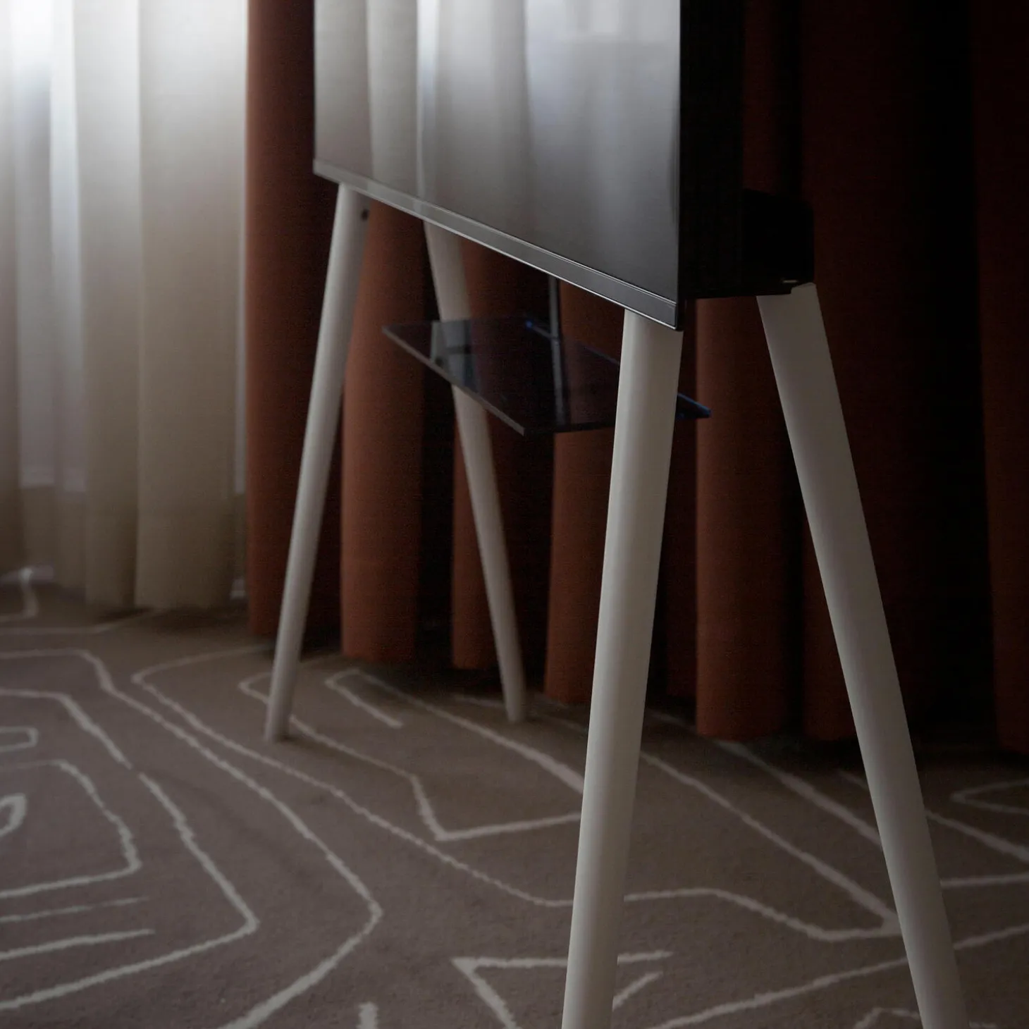 TV-stativ XL 55”-77” in white painted birch fra JALG. Farve: white. Mål: H: 69,5 x L: 134,5 x D: 33 cm. Kompatibel med alle tv’er med VESA-tilbehør (kun vandrette fastgørelsespunkter i nederste række).OLED-tv: fastgørelse i øverste eller nederste rækkeAndre tv’er: fastgørelse i nederste række.