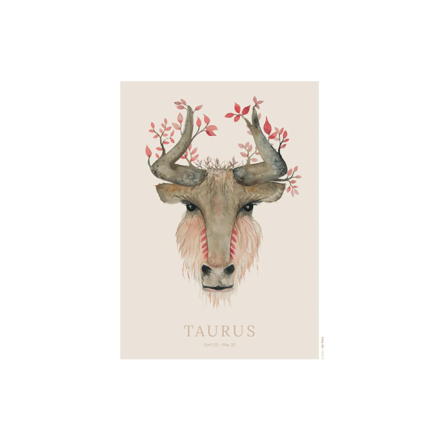 Tyren plakat fra All by Voss. Plakatdesign med grafik (tekst) og beige flade under motiv, med trykt hvidt passepartout. Originalen er scannet i høj opløsning for bedst muligt gengivelse. Produceret i Danmark.
