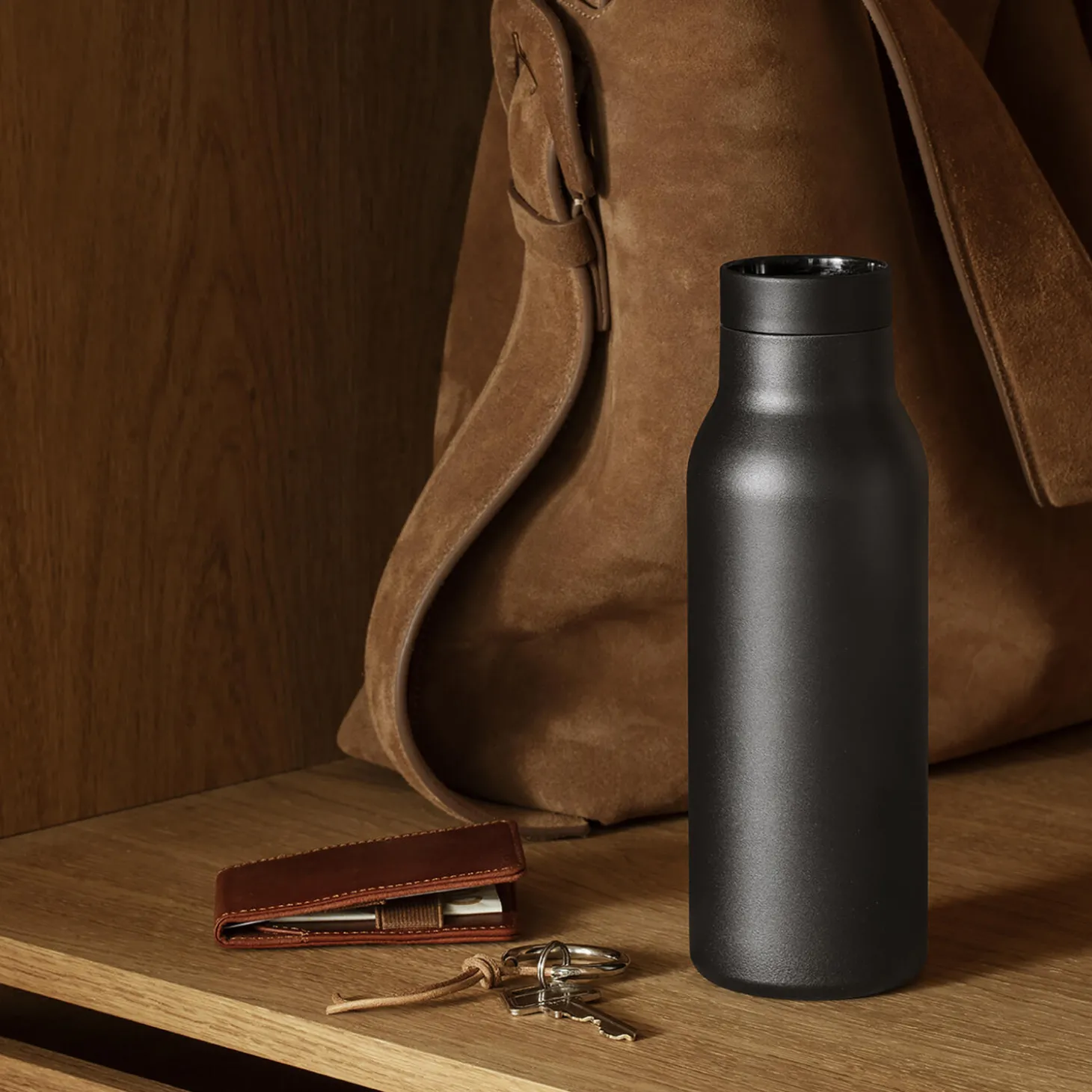 Termoflasken gør det muligt altid at have koldt vand med på farten. De dobbeltvæggede sider med vakuumeffekt holder vandet koldt længe, flasken kan nemt betjenes med én hånd og det praktiske kliklåg giver dig mulighed for at drikke fra alle sider. Flasken er fremstillet i robuste materialer, som tåler hyppig hverdagsbrug og er 100% tæt, så den er nem at tage med i tasken. Kan også bruges til varme drikke. Holder temperaturen – koldt i 12 timer og varmt i 6 timer. 5 års garanti mod fabrikationsfejl.