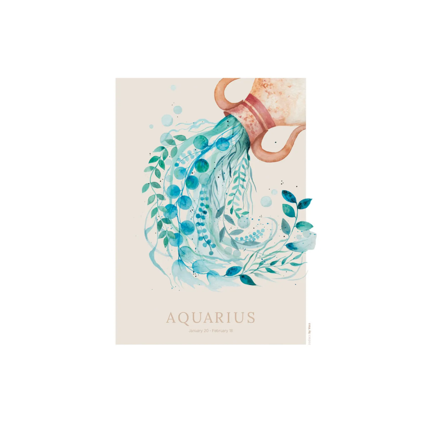Vandbæreren plakat fra All by Voss. Plakatdesign med grafik (tekst) og beige flade under motiv, med trykt hvidt passepartout. Originalen er scannet i høj opløsning for bedst muligt gengivelse. Produceret i Danmark.