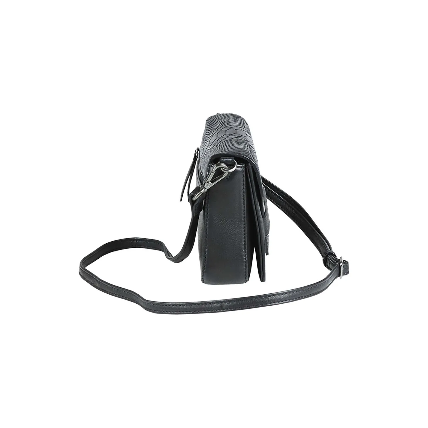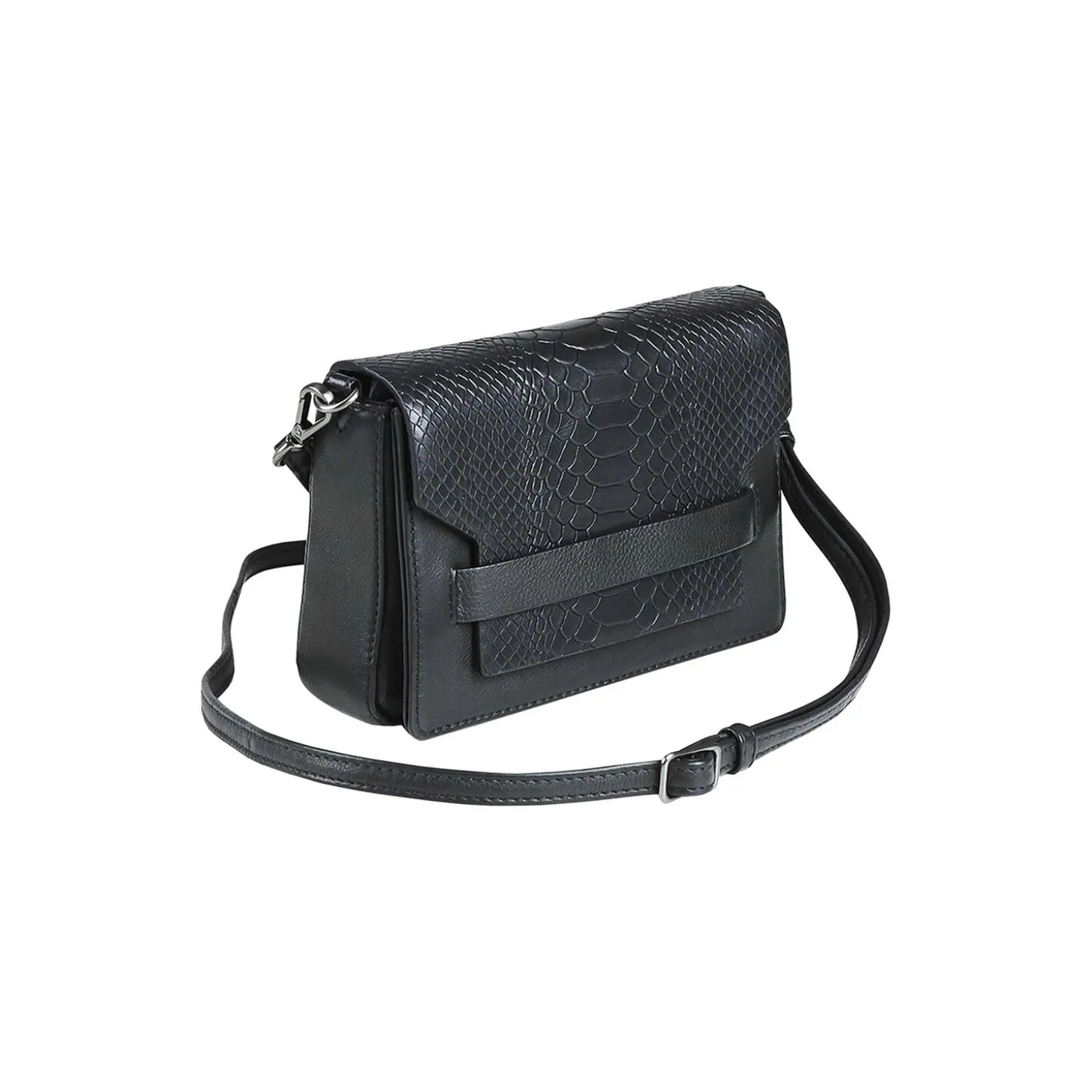 VanyaMBG Crossbody Bag i læder fra Markberg. Farve: snake black. Mål: H: 11 x B: 24 x D: 6,5 cm.