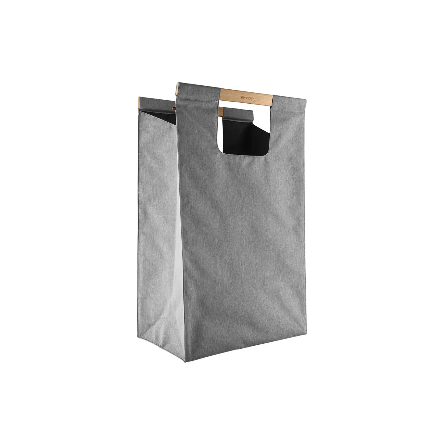 Gem vasketøjet af vejen i et snuptag med funktionel vasketøjskurv, opbevaring og transporttaske i én. Den dekorative vasketøjspose i delikat grå farve har en praktisk bærehank i bøgetræ, så posen nemt kan tages med, for eksempel i vaskekælderen, lukkes nemt med magnet og står stabilt uden at falde sammen. Nem at rengøre. Aftør blot nylonforet med en opvredet klud og vedligehold håndtag i bøg med jævnlig oliering.