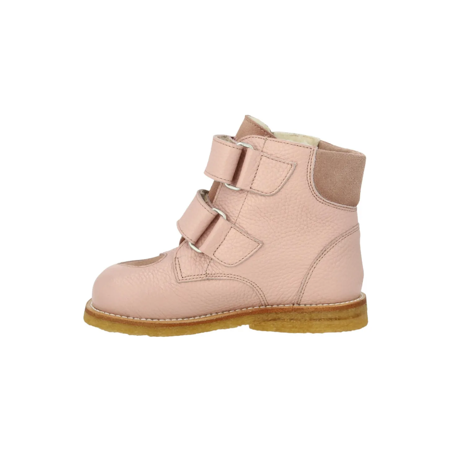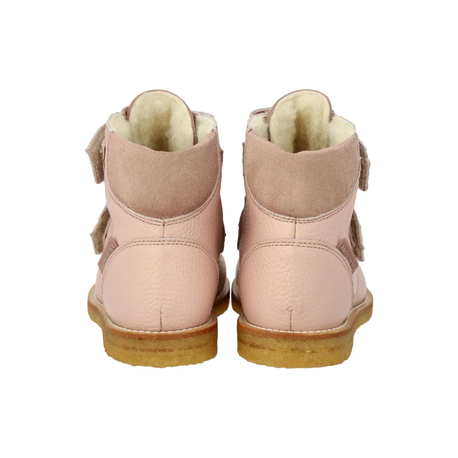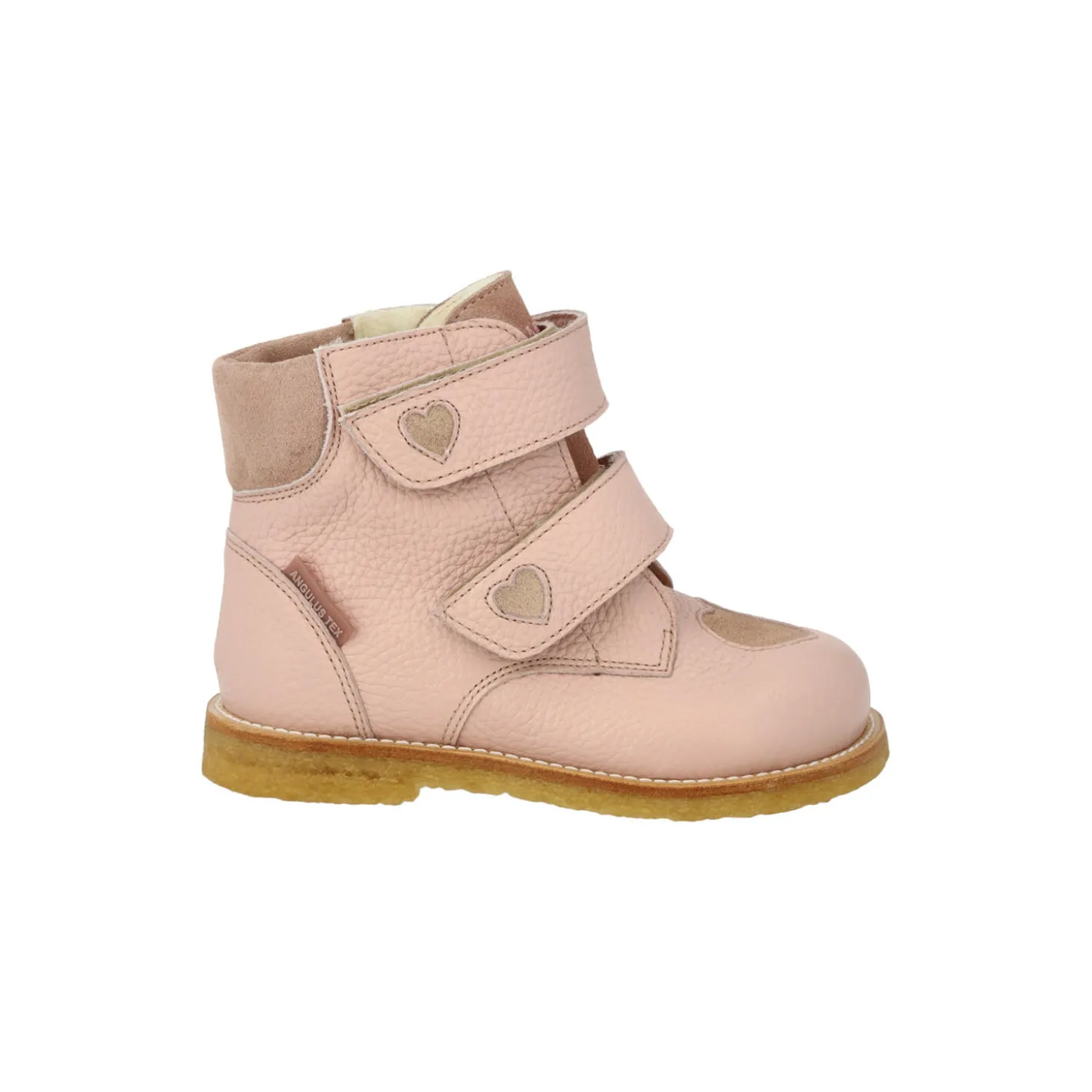 Velcro TEX-støvle i læder med funklende glitterhjerter og blødt merino uldfoer, der er designet til at holde små fødder varme og tørre, uanset vejret.Skoen har justerbare velcroremme for optimalt personligt fit, vatteret indersål, en fast hælkappemed polstret ruskindskrave for ekstra stabilitet, komfort og støtte, dekorativ stikningsrand og en let, blød og fleksibel FSC-certificeret rågummisål i fornybart naturgummi, der er udskåret med fokus på svangstøtte.Udformet i åndbart skind med PFAS-fri TEX-membran og 100% merino uldfoer. Indvendige mål: 24: 15,7 cm25: 16,3 cm26: 16,9 cm27: 17,5 cm28: 18,1 cmDesignet i Danmark og håndlavet med kærlighed i Portugal. Mål altid barnets fod inden du køber, så du får købt den rigtige størrelse. Vi anbefaler et voksetillæg på 1-1,5 cm.