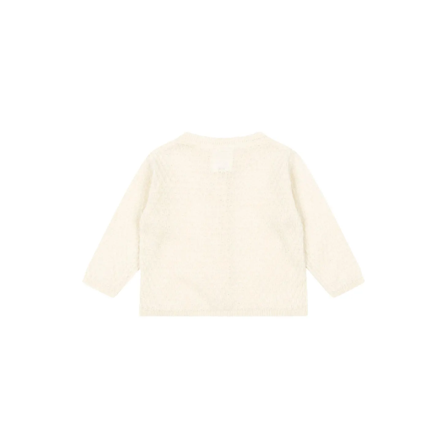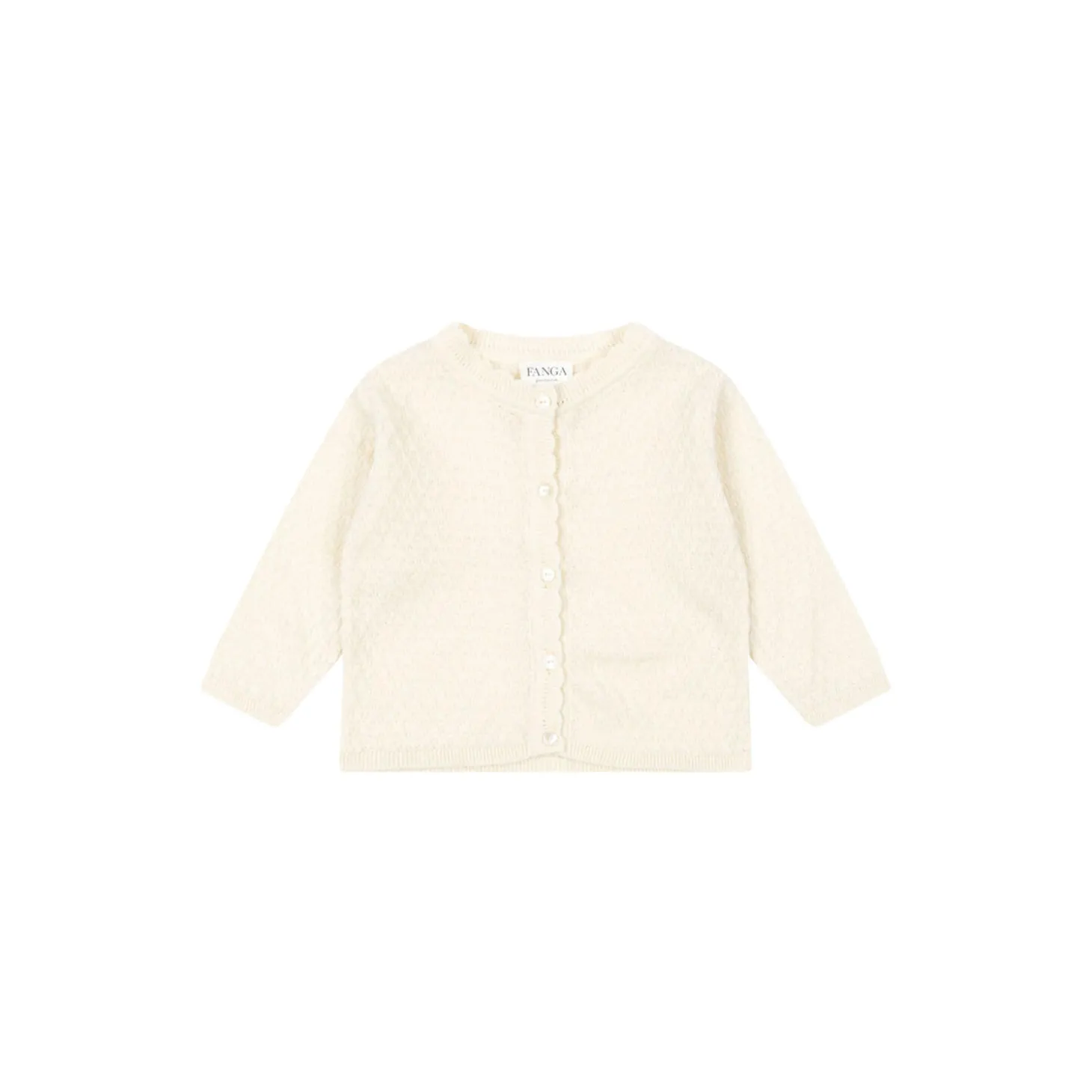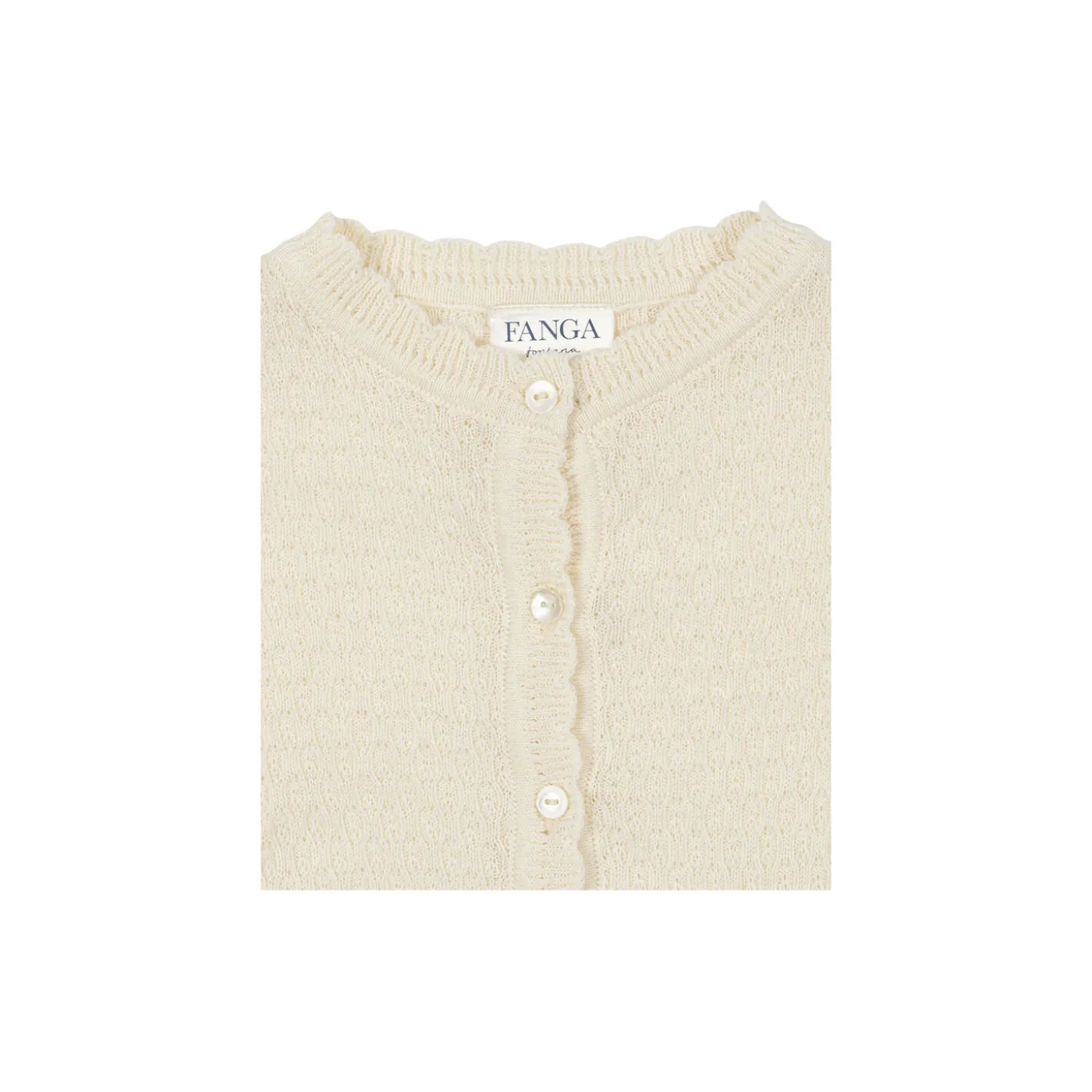 Light cardigan in a delicate pointelle knit pattern. Made from 100% organic cotton that is soft and breathable, and designed with scallop edges and mother of pearl buttons in front.GOTS, Organic, certified by CU1094701