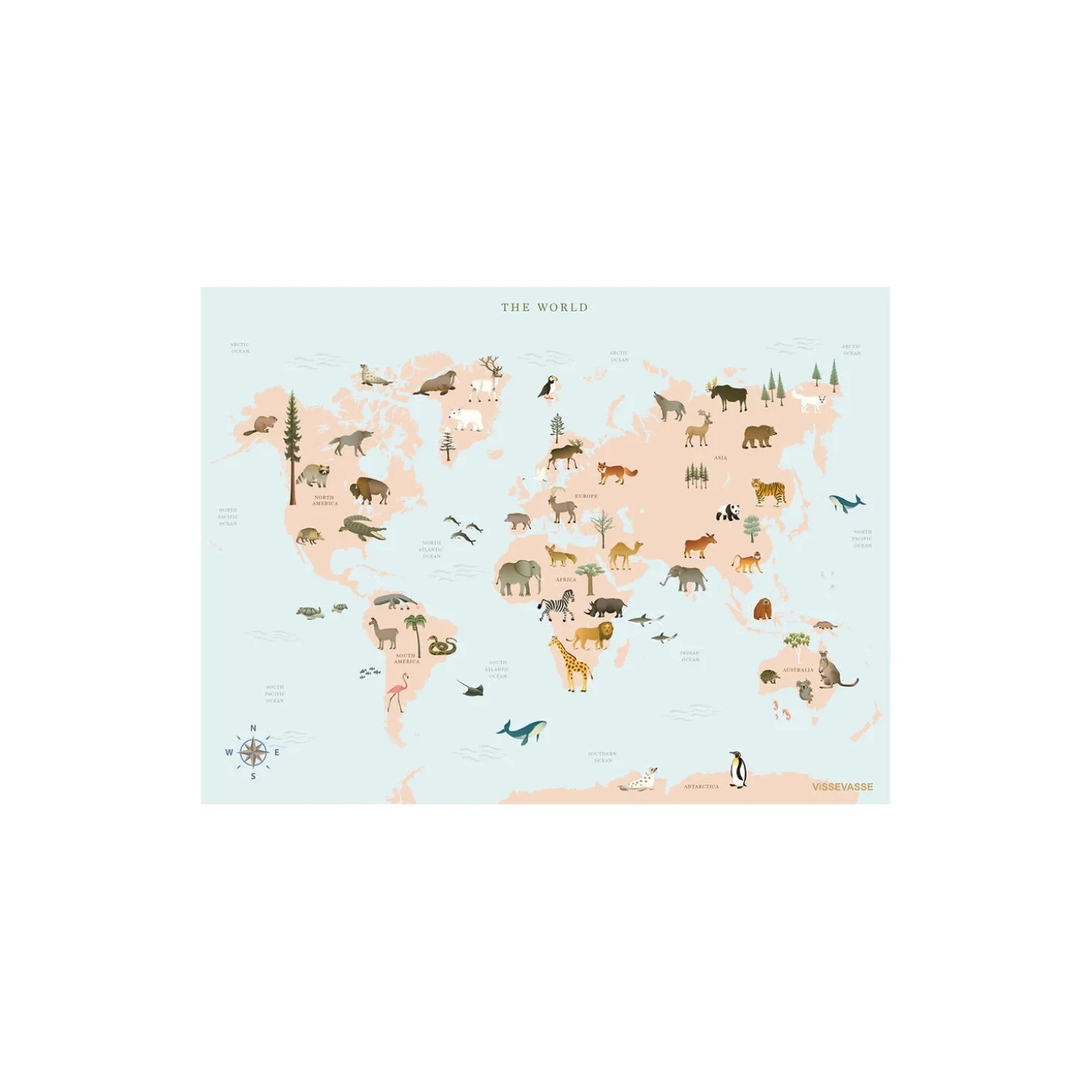 Store og små, i vand og til lands, alene og i flok. Verden er fuld af helt fantastiske dyr. De har alle sammen et hjem, ligesom dig. De syv kontinenter på kortet viser, hvor nogle af dyrene hører hjemme. Flere af dyrene kender du helt sikkert allerede, mens nogle af dem måske er helt nye for dig. De glæder sig alle sammen til, at du lærer dem at kende. Plakaterne er FSC certificeret og trykt på 170 gr. Arctic Silk papir produceret i Sverige. Produktet er produceret i Danmark.