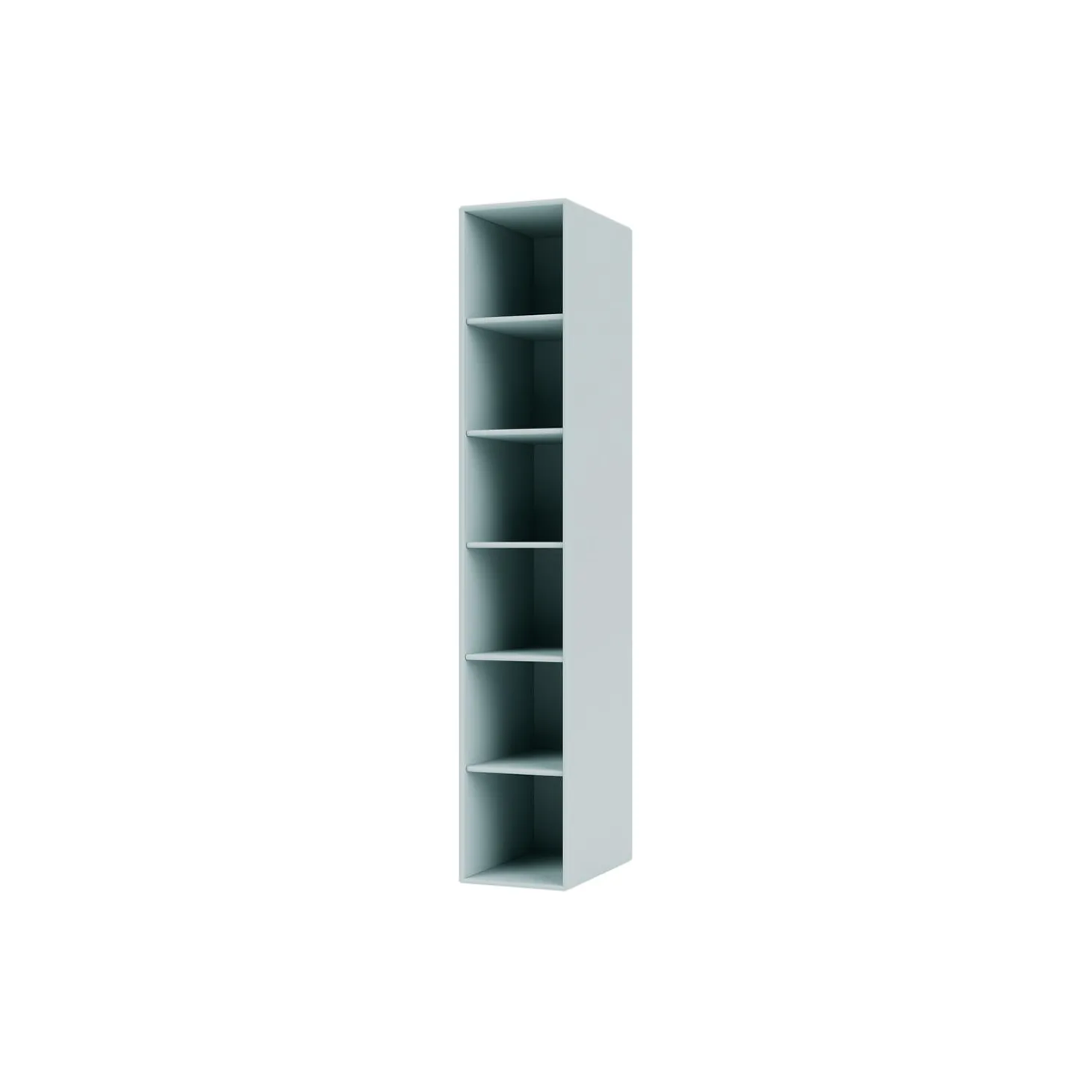 Den sidehængte reol med fem hylder fra Montana Hall serien er en lille smal reol, idéel som opbevaringsmøbel til den lille entré. Reolen er med ophængsbeslag på højre side og kan fås med eller uden figurspejl.