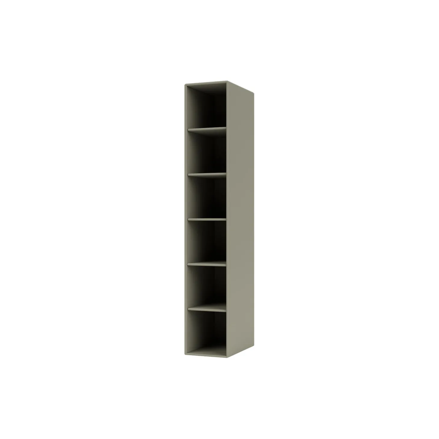 Den sidehængte reol med fem hylder fra Montana Hall serien er en lille smal reol, idéel som opbevaringsmøbel til den lille entré. Reolen er med ophængsbeslag til venstre side og kan fås med eller uden figurspejl.