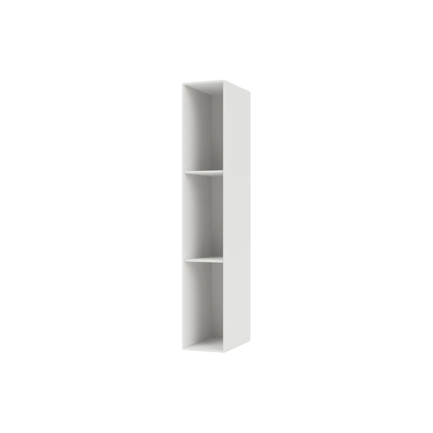 Den sidehængte reol med tre hylder fra Montana Hall serien er en lang smal reol som er skabt specielt til entréen. Den sidehængte reol er med ophængsbeslag til højre side og kan fås med eller uden figurspejl.