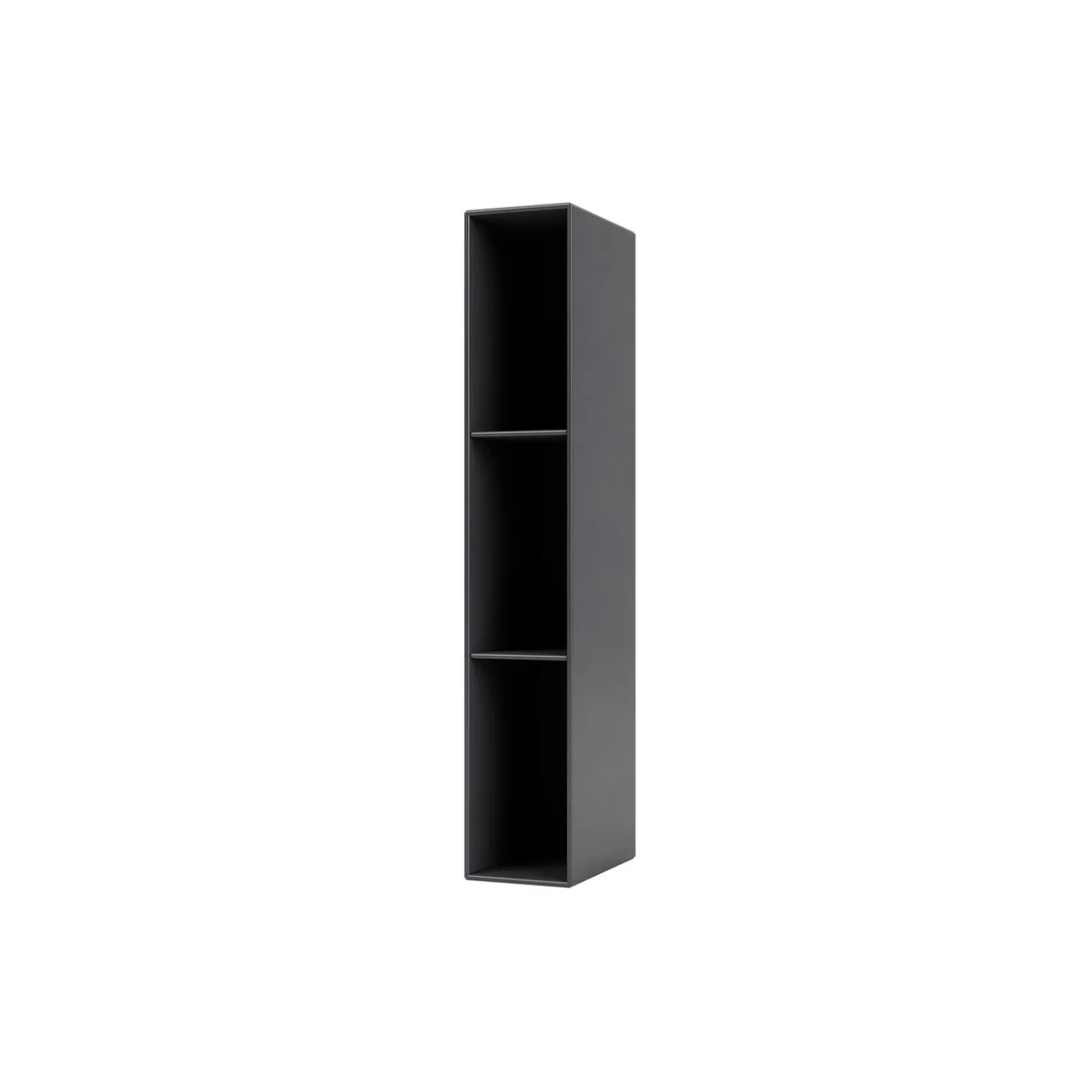 Den sidehængte reol med tre hylder fra Montana Hall serien er en lang smal reol som er skabt specielt til entréen. Den sidehængte reol er med ophængsbeslag til højre side og kan fås med eller uden figurspejl.