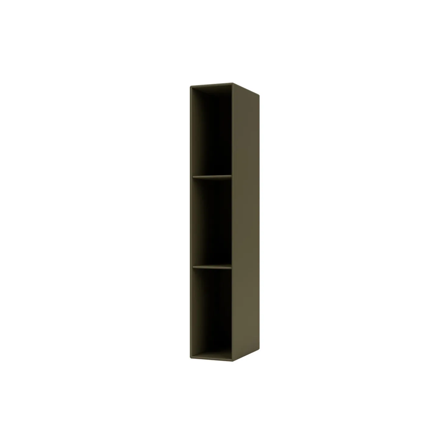 Den sidehængte reol med tre hylder fra Montana Hall serien er en lang smal reol som er skabt specielt til entréen. Den sidehængte reol er med ophængsbeslag til venstre side og kan fås med eller uden figurspejl.