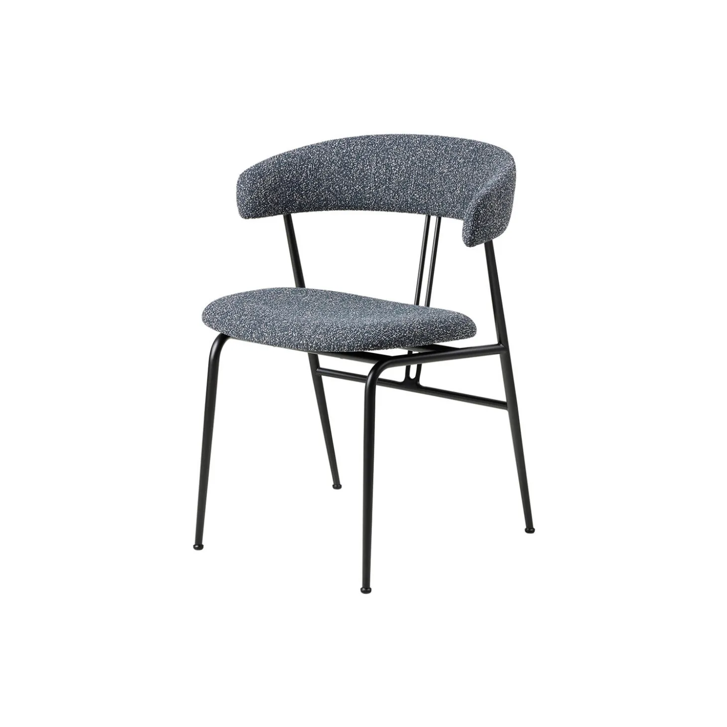 Violin Dining Chair fuldpolstret i Around Bouclé 023 tekstil af Dedar og stel i lakeret stål fra GUBI. Farve: Around Bouclé 023/black matt. Mål: H: 76 x B: 58 x D: 55,5 cm. Siddehøjde: 45 cm. Design: GamFratesi.