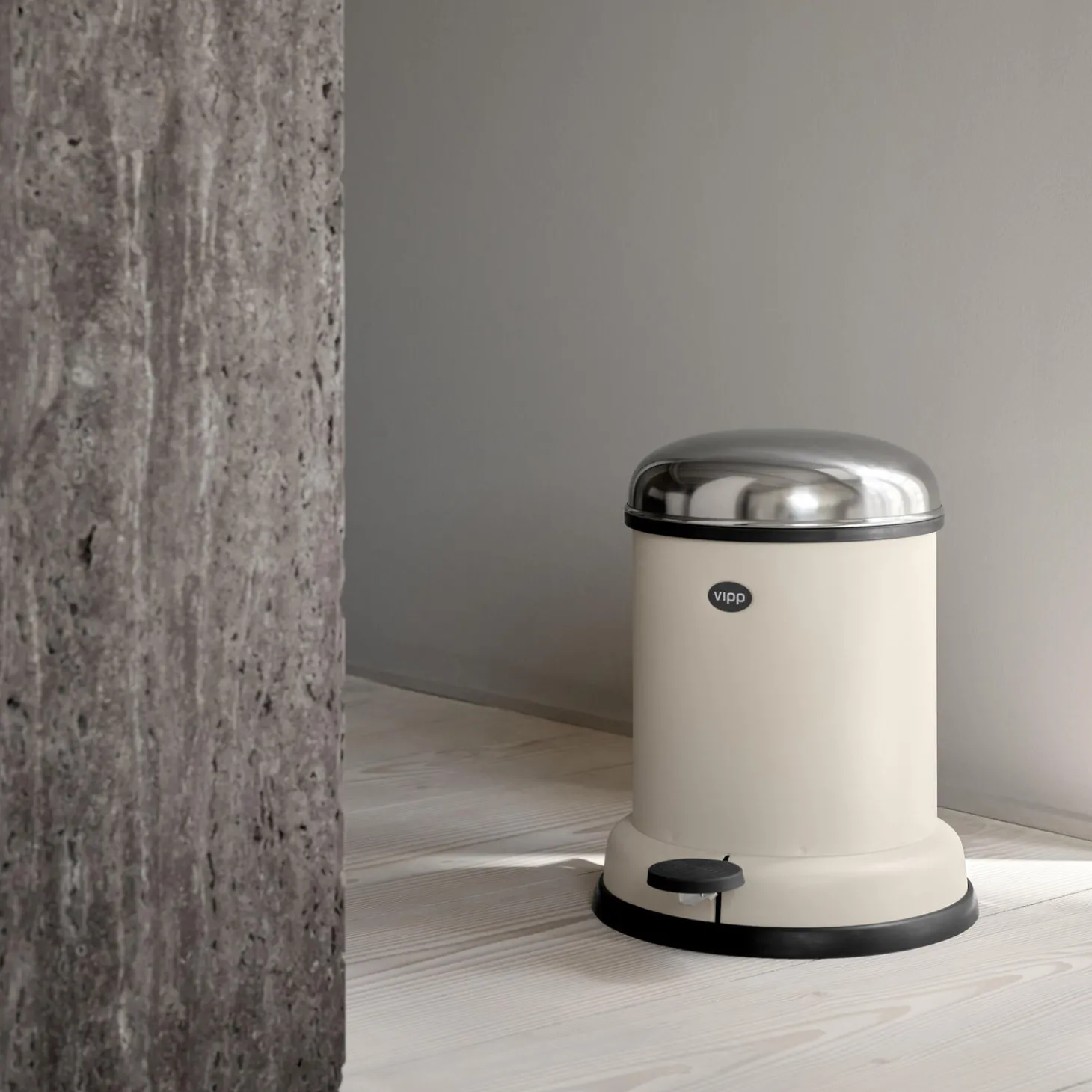 Vipp13 pedalspanden er den mindste Vipp pedal spand og er ideel til små badeværelser. Denne pedalspand er udstyret med en udtagelig inderspand, et låg der sikrer lufttæt tillukning og en dæmpemekanisme, der lukker spandens låg i en blød bevægelse. En gummiring i bunden beskytter gulvet.