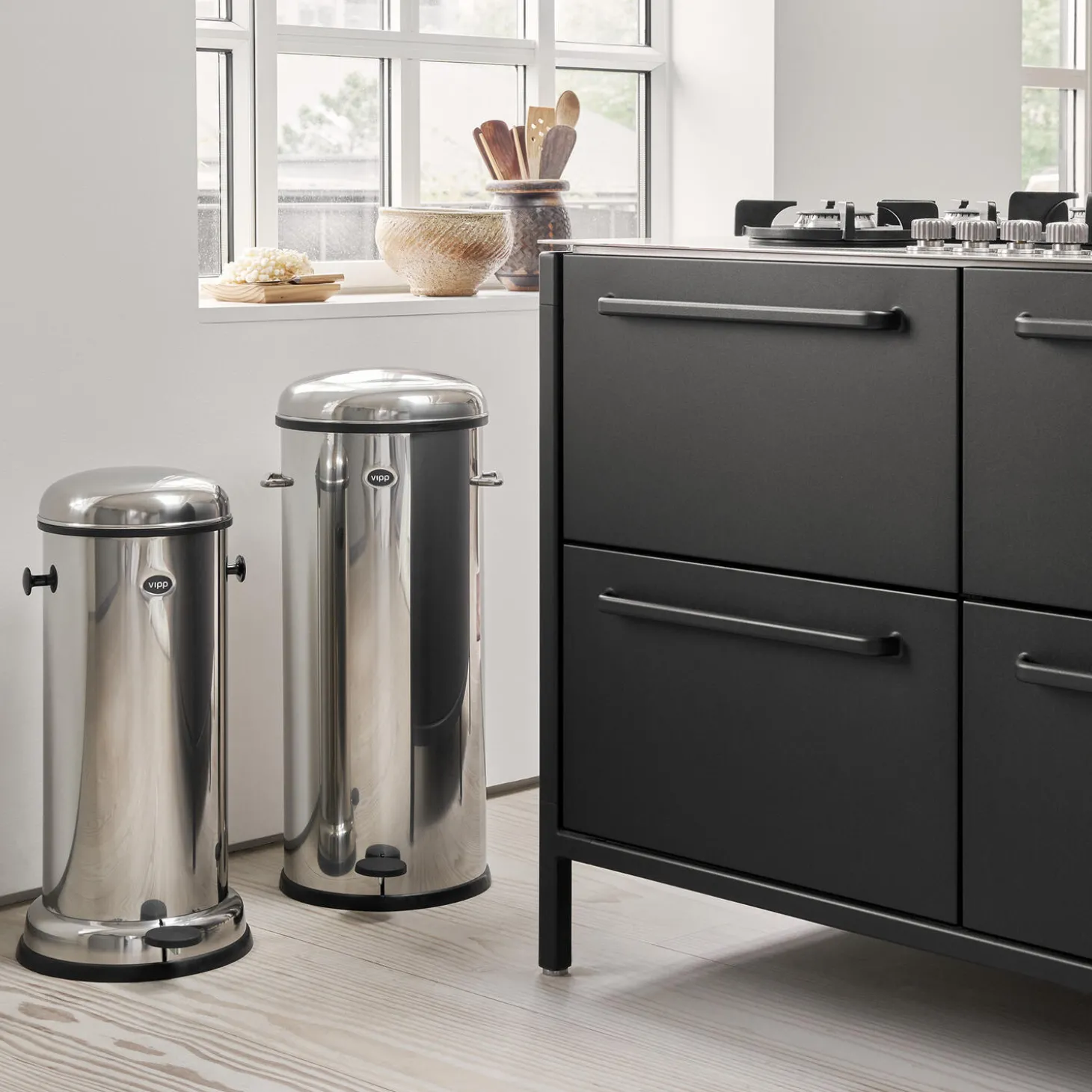 Vipp16 pedalspand er en stor skraldespand til køkkenet, kontoret eller badeværelset. Denne pedalspand er udstyret med en udtagelig inderspand, et låg der sikrer lufttæt tillukning og en dæmpemekanisme, der lukker spandens låg i en blød bevægelse. En gummiring i bunden beskytter gulvet.