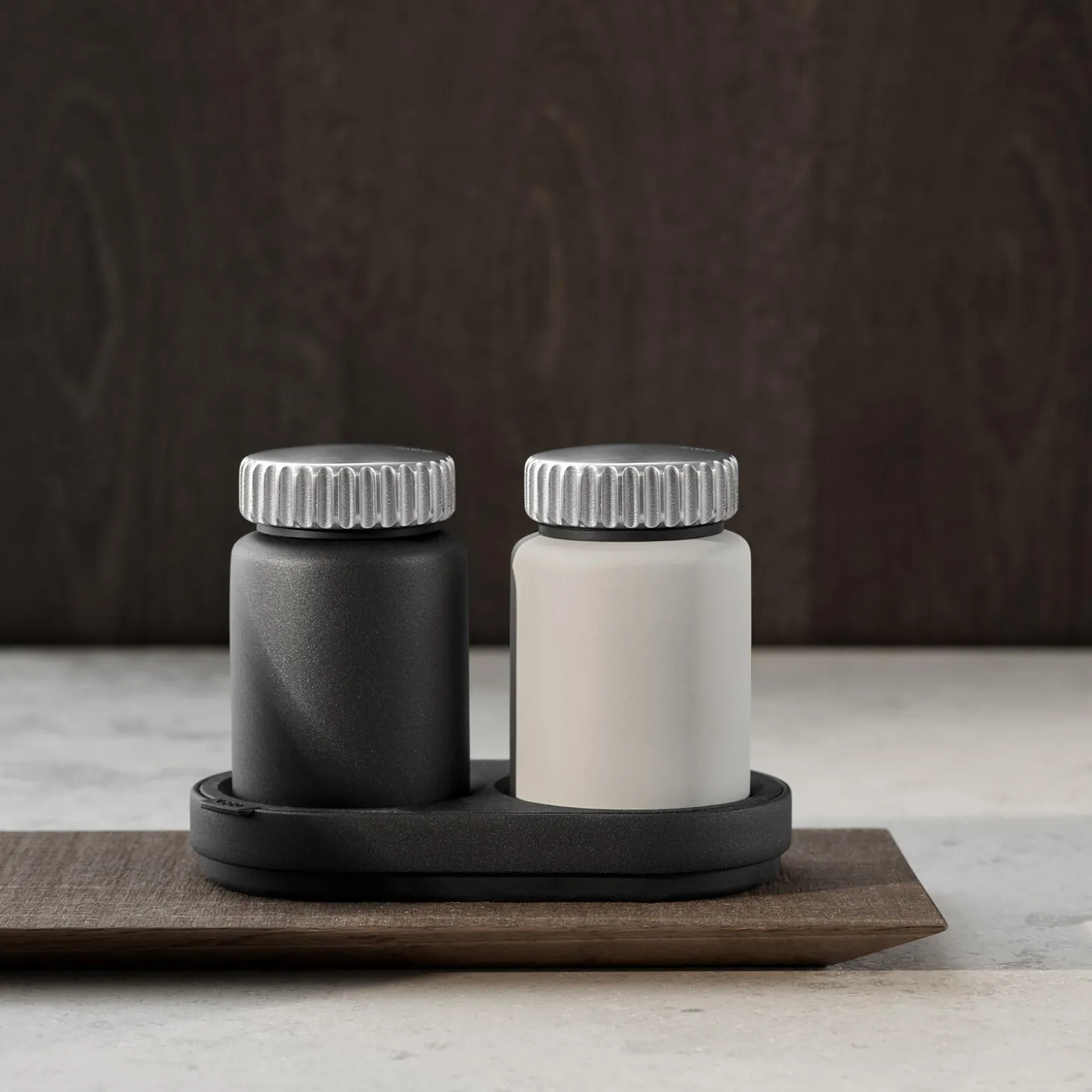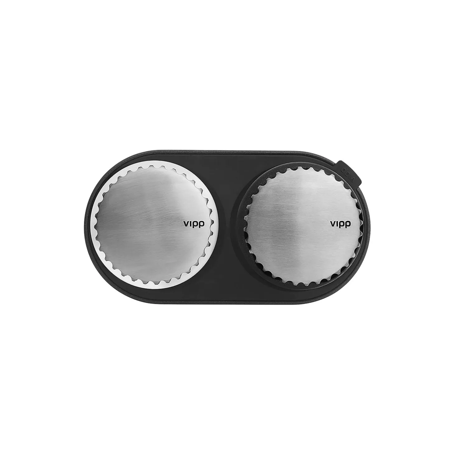 Vipp salt- og peberkværnene er uundværlige tilføjelser til køkken eller spisebord. Sættet med de to kværne er udstyret med et drejehoved og en holdbar, keramisk kværn med en raffineret kværnelyd. Den fælles base har en udtagelig indersektion.