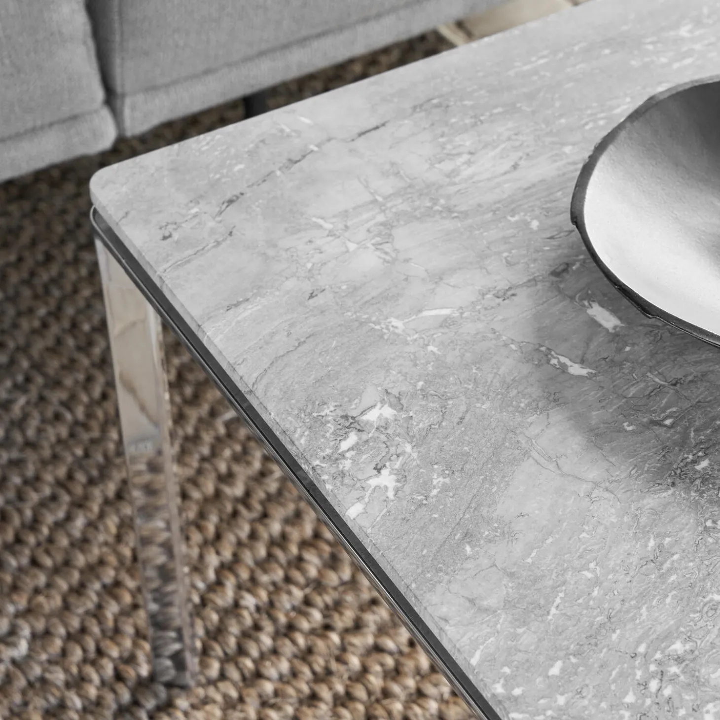- Materiale: stel i poleret almuminium med bordplade i marmor
